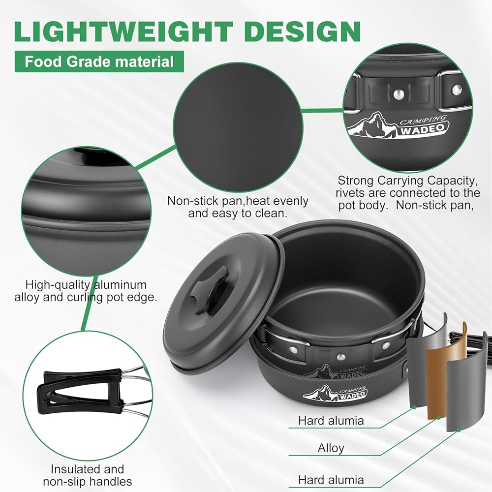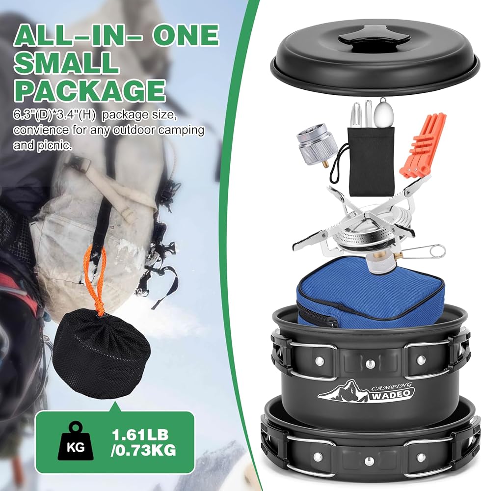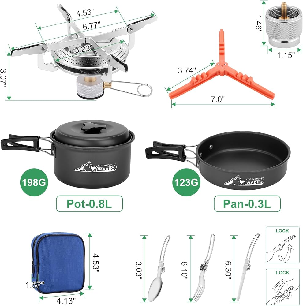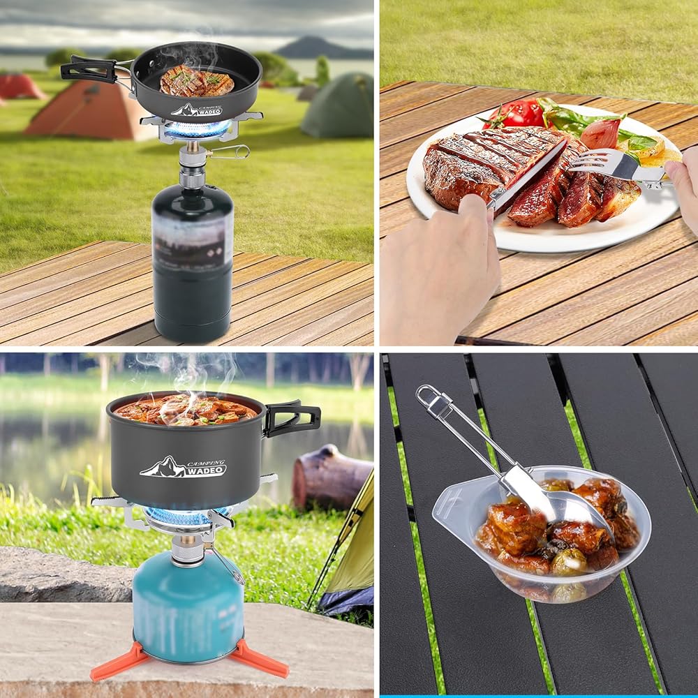 WADEO Portable Camping Stove Burner with Camping Cookware