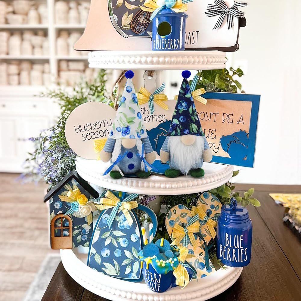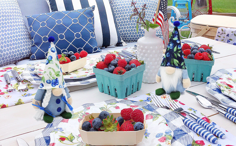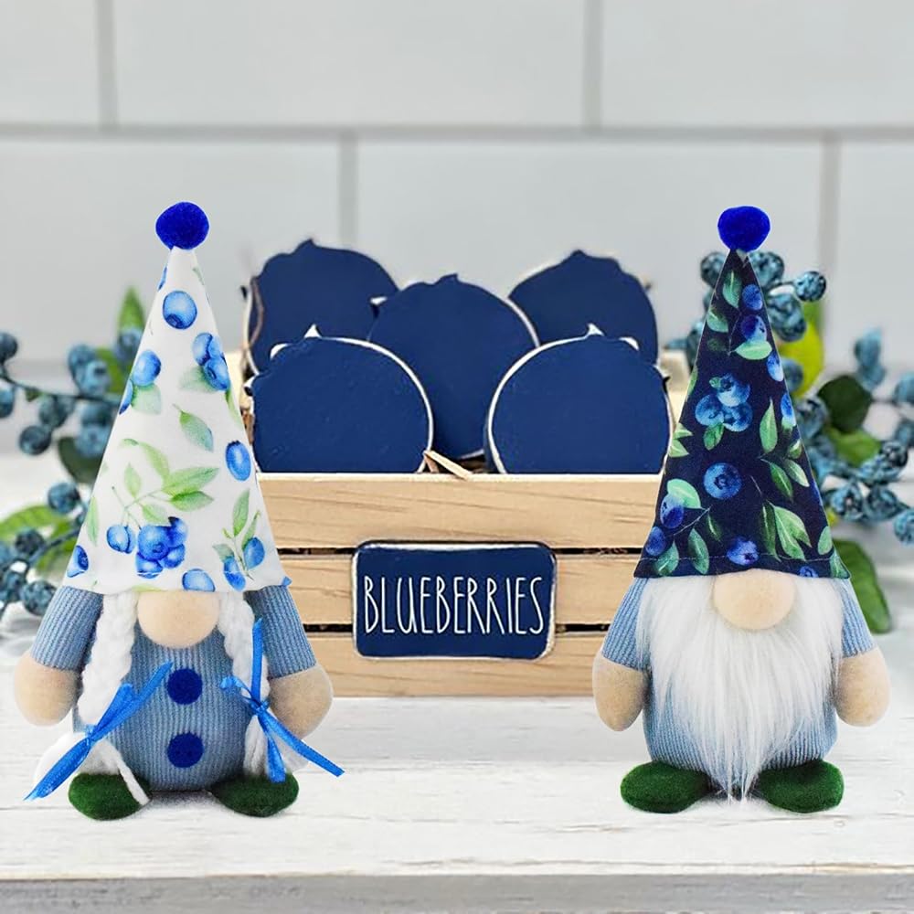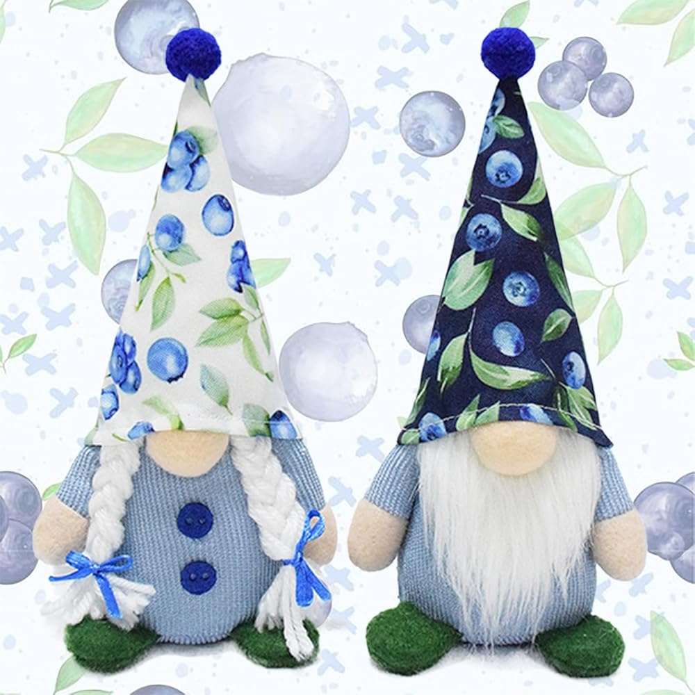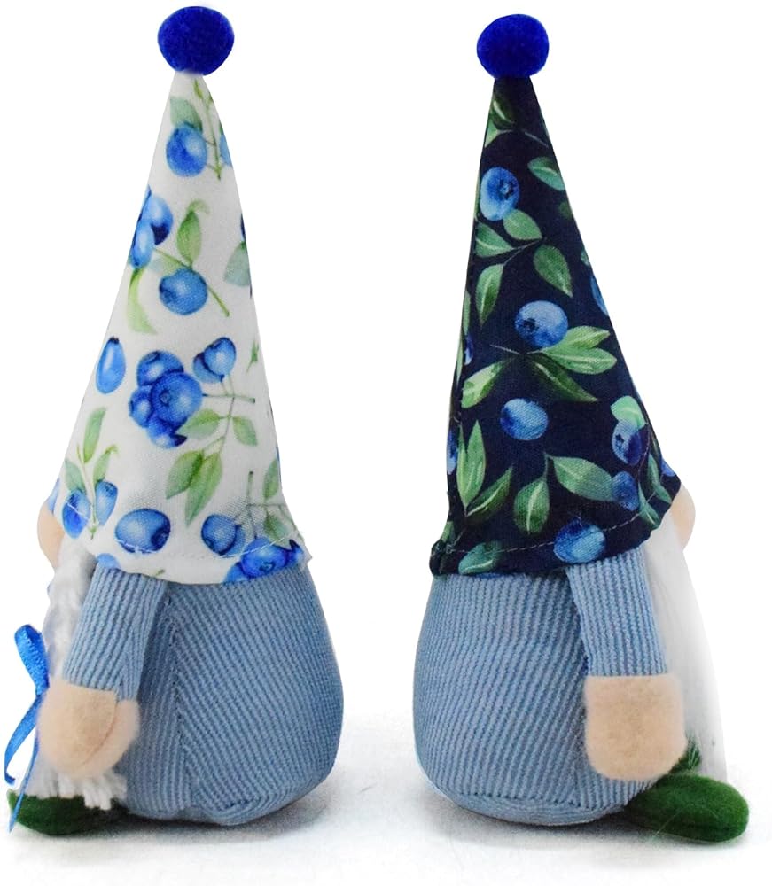 • [تصميم فريد] يتمتع كلا العفاريتين بطبعات التوت الأزرق على قبعتيهما، والجزء العلوي من القبعة مزين بالتوت الأزرق. ولهما جسم أزرق ولحية بيضاء وأنف من القماش.