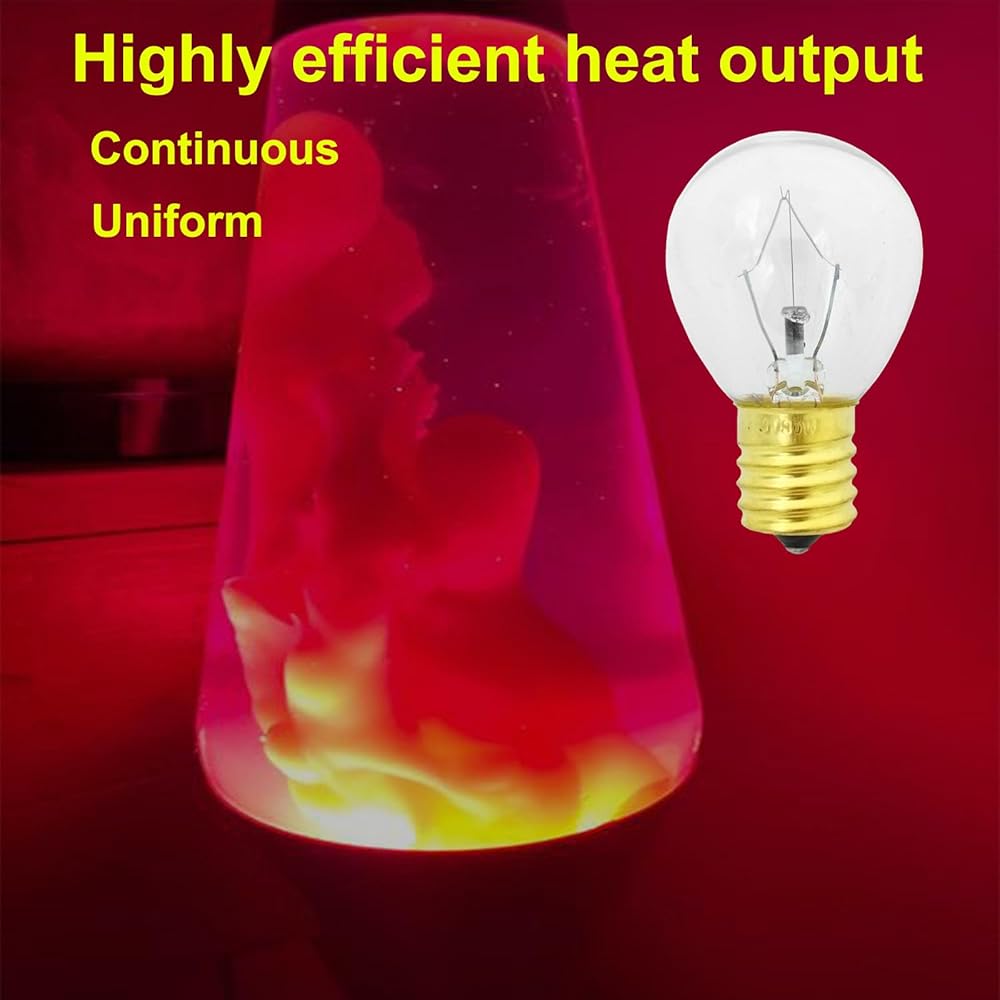 【3】مصابيح بديلة أصلية 25 وات لمصابيح لافا - 120 فولت فائقة السطوع وتذوب بسرعة، 2700 كلفن أبيض دافئ، 150 لومن من خرج الضوء، مقاومة لدرجة الحرارة العالية حتى 300 درجة مئوية/572 درجة فهرنهايت.