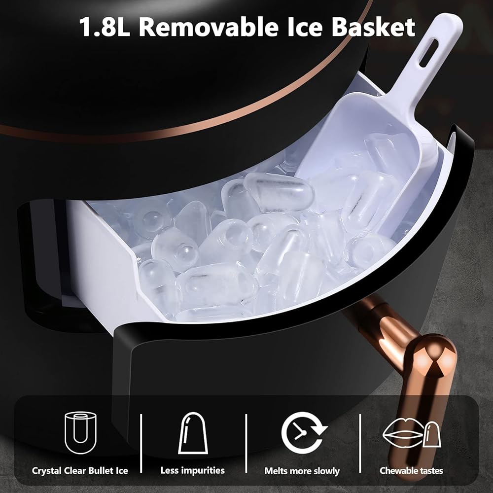 【صنع ثلج سريع وسعة كبيرة 】يستغرق 8 دقائق فقط (ثلج صغير) - 9 دقائق (ثلج كبير)، سوف تحصل على 10 قطع ثلج من آلة الثلج. خزان مياه كبير للغاية سعة 2.3 لتر وسلة ثلج سعة 1.8 لتر تسمح بتكوين ثلج يصل إلى 33 رطلًا يوميًا لتقديمه. حجمان مناسبان للأطعمة الطازجة المجمدة (S) ومشروبات التبريد (L)