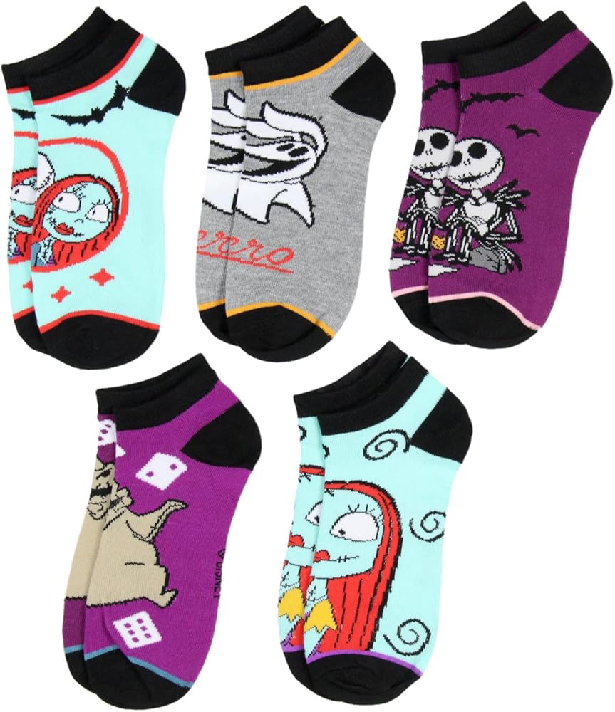 جوارب ديزني كابوس قبل عيد الميلاد للبالغين جاك سالي زيرو أوجي بوجي ميكس آند ماتش جوارب للكاحل بدون عرض 5 أزواج