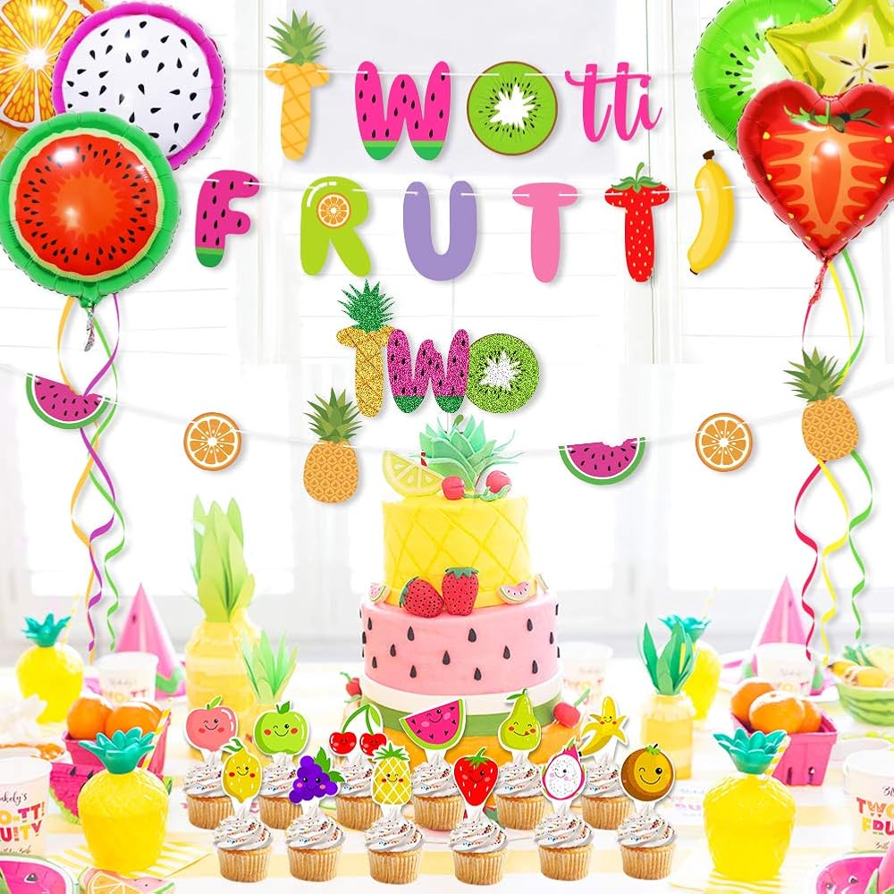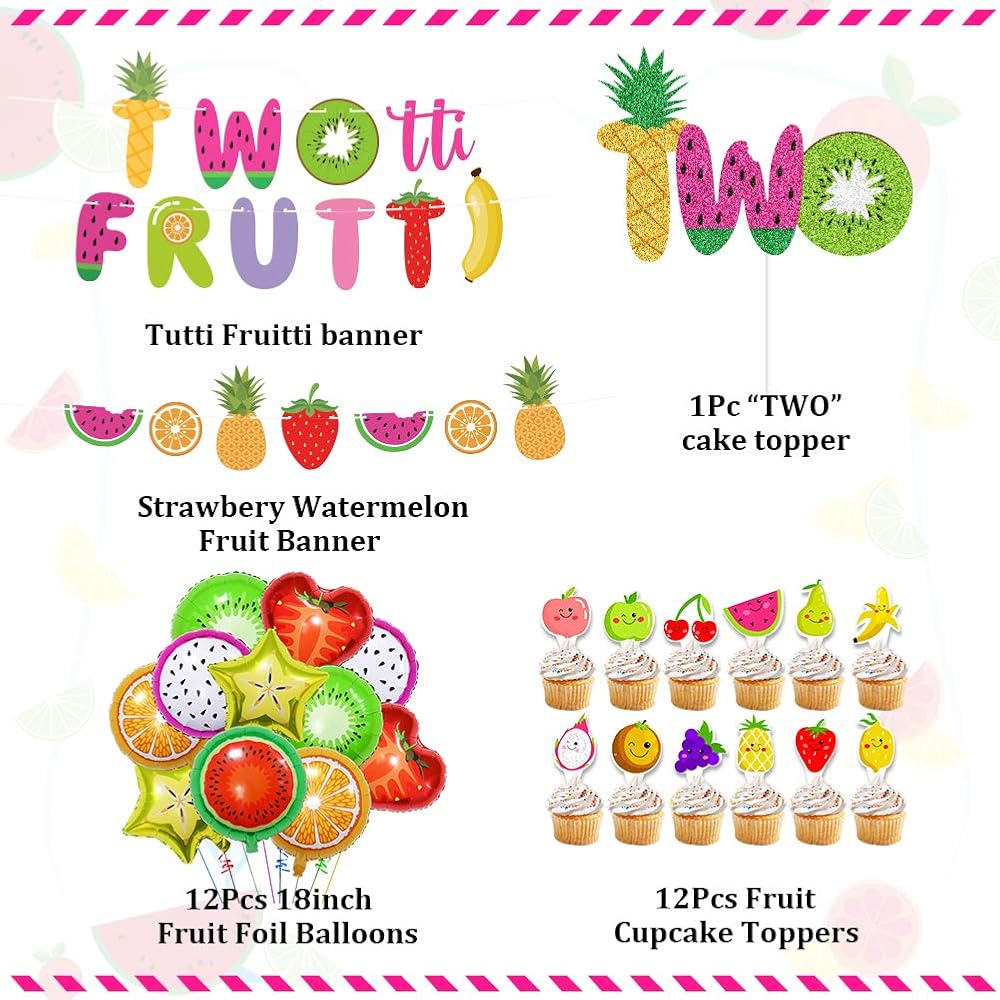 utopp twotti frutti مجموعة زينة عيد الميلاد، twotti frutti راية البطيخ راية عيد الميلاد الثاني كعكة توبر الصيف بالونات الفاكهة لوا الفاكهة تحت عنوان الحزب، لوازم حفلة عيد ميلاد الثاني