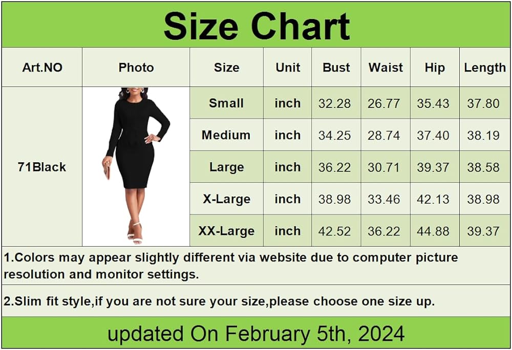 • Customer Service: Please order according to the size chart on the main product picture. If you have any questions about our casual work dress, please feel free to contact us.