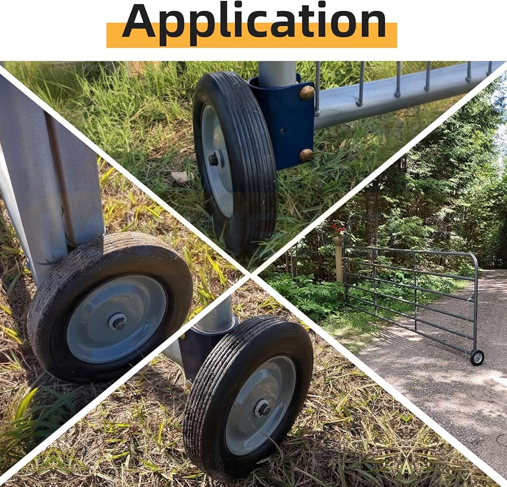 APPLICATION: Gate Wheel Fits for Round Tube Gates 1-5/8" to 2" in Diameter, and Fits for Various Terrains such as Concrete, Grass, Gravel Ground, etc;