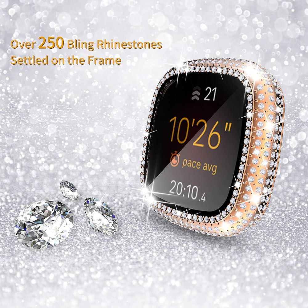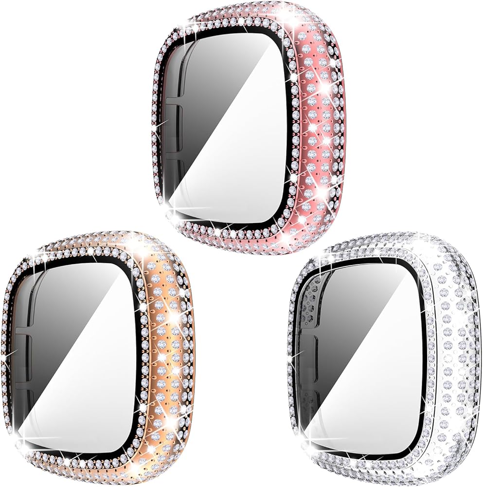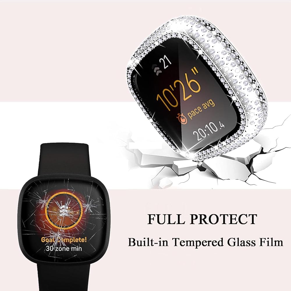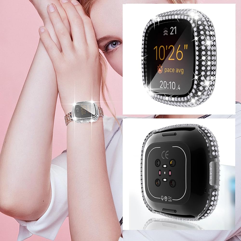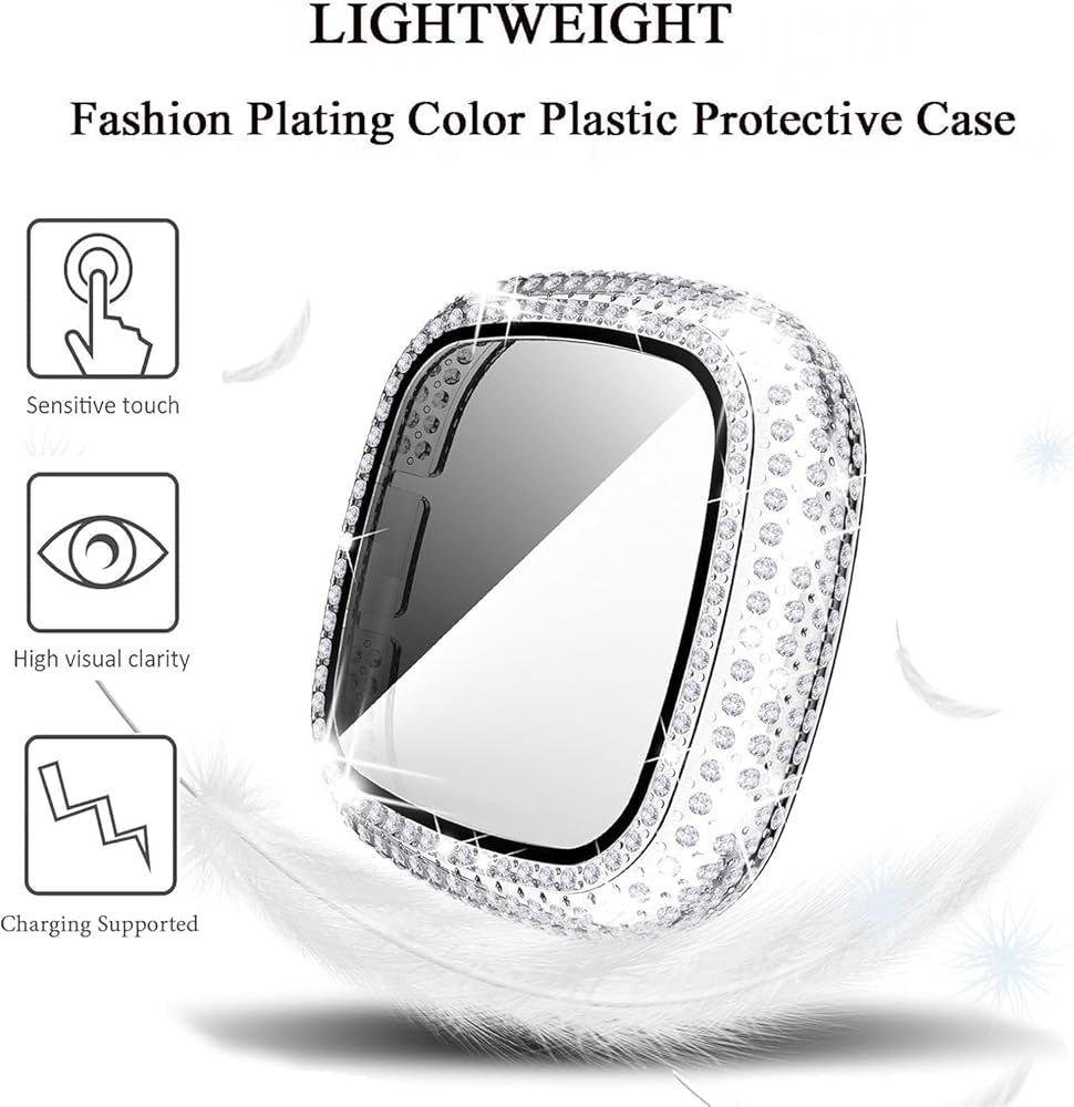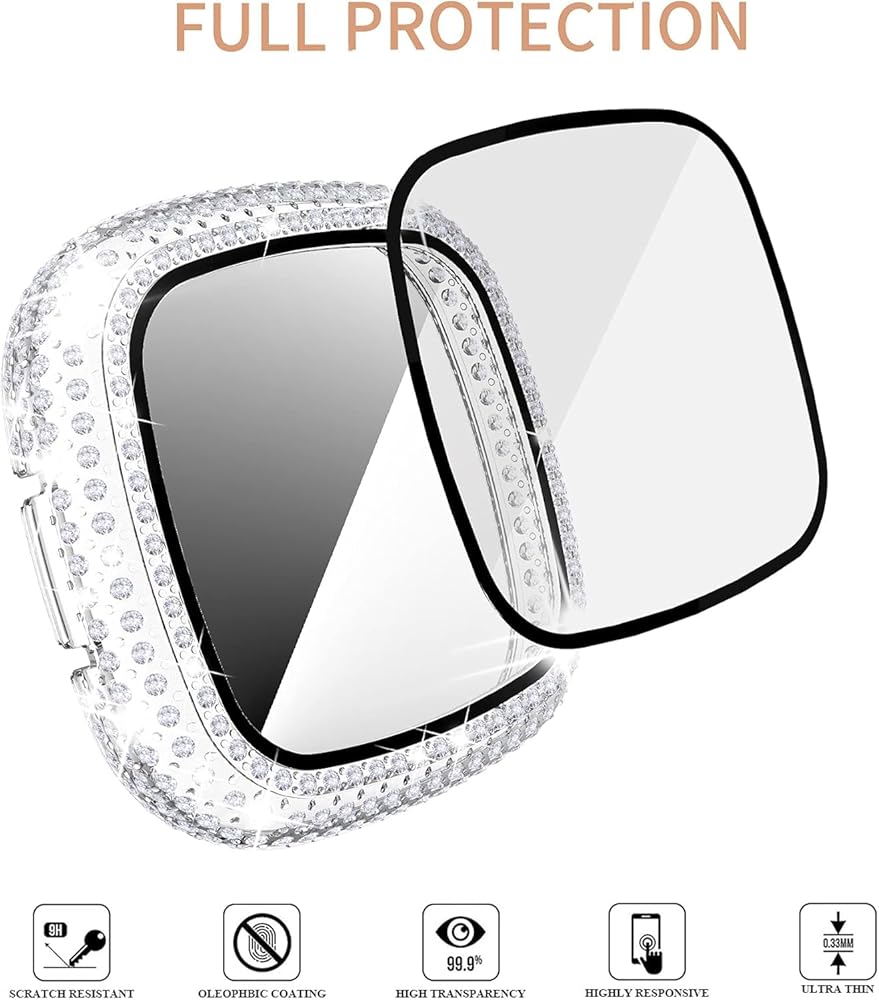 ✅[نماذج متوافقة]!!! مع شاشة زجاجية عالية الدقة. تتوافق حافظة Bling هذه مع Versa3 وSense. يرجى التأكد من طراز ساعتك قبل الشراء. واضح + واضح + واضح.