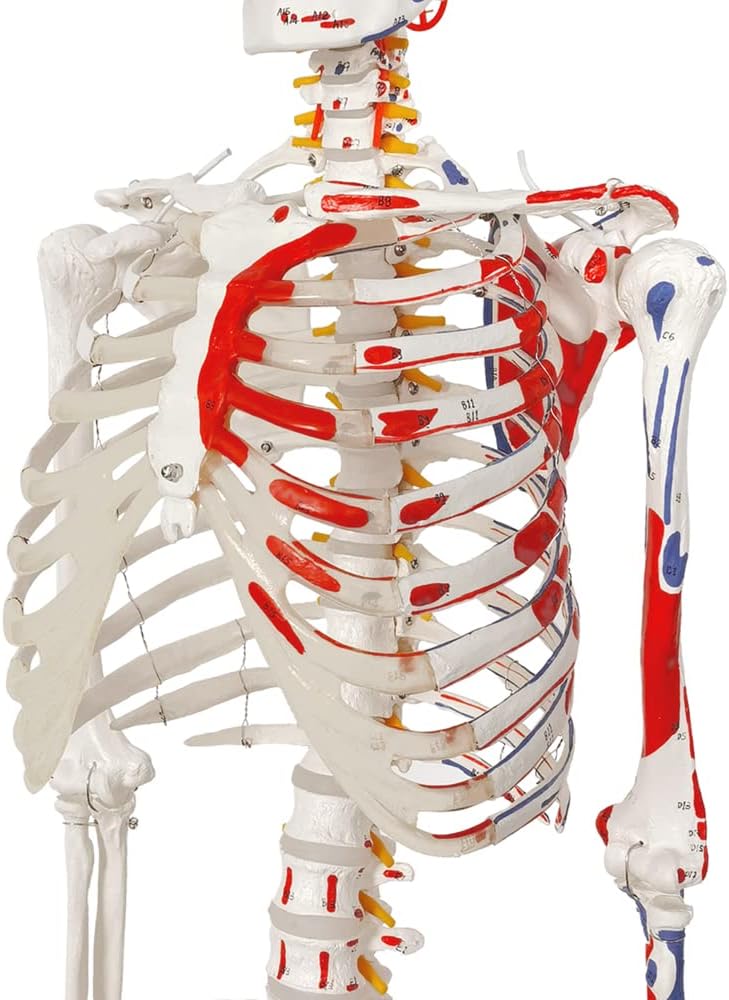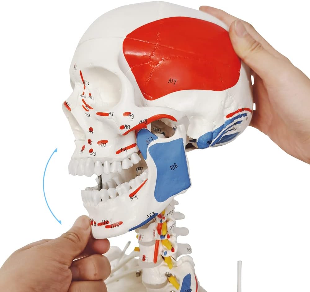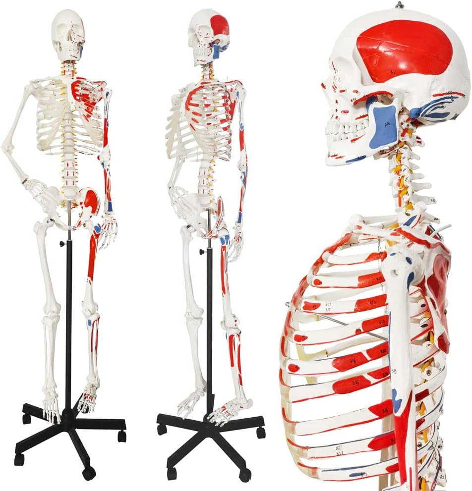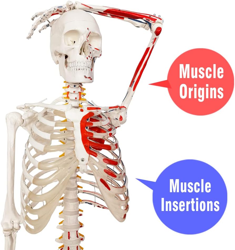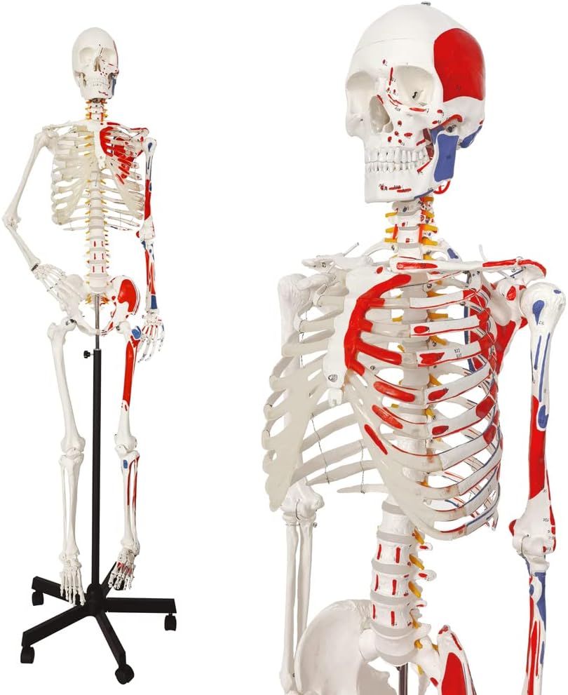 👫【 Life size Human Skeleton Model】: Incluing a great amount of accurate detail. It beautifully depicts the skeletal structure of the human body, and accurately displays the muscle insertion and origin points. This model is presented on a sturdy black base. Demonstrates articulation in the shoulder, elbow, wrist, hip, knee and ankle joints. This line of products was designed by and for medical professionals, using only the finest materials to craft each model.