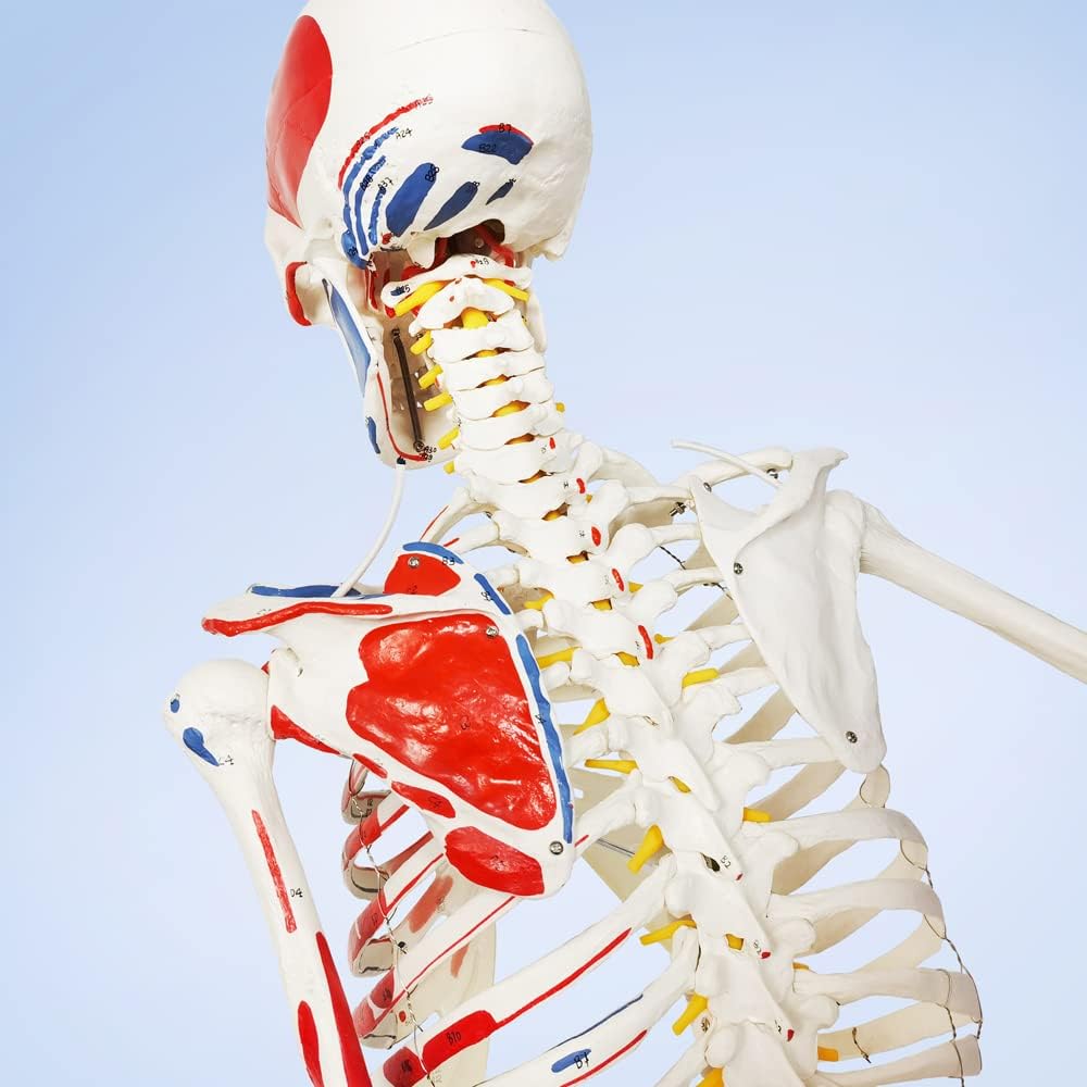 نموذج الهيكل العظمي البشري الجديد لعام 2024، نسخة طبق الأصل من الهيكل العظمي التشريحي الطبي بالحجم الطبيعي مع الأعصاب الشوكية، وإدخال العضلات ونقاط الأصل، يتضمن حاملًا متدحرجًا، للأطباء والطلاب