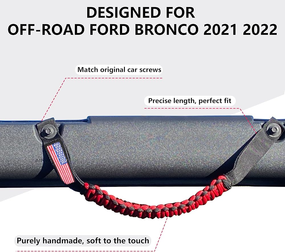 قيادة آمنة - سيضيف المقبض المضاد للانزلاق الأمان والراحة لسيارتك، وهو ملحق إضافي أساسي لمالكي فورد برونكو. تطريز رائع لعلم الولايات المتحدة الأمريكية، كن فخورًا بالولايات المتحدة!