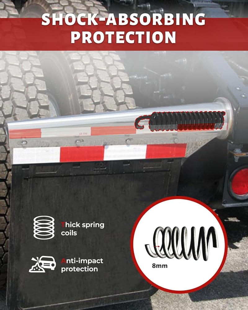 الاحتفاظ الفعال بقلاب الطين المحمل بنابض: يستخدم نوابض مرنة توفر قوة إمساك ثابتة وتعديلًا سلسًا لألواح الطين، مما يضمن الحماية الشاملة ضد حطام الطريق والحفاظ على الوضع الأمثل للرفرف.