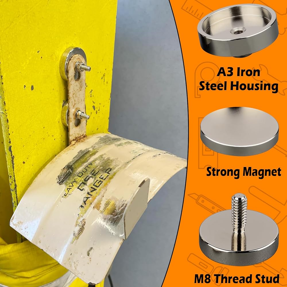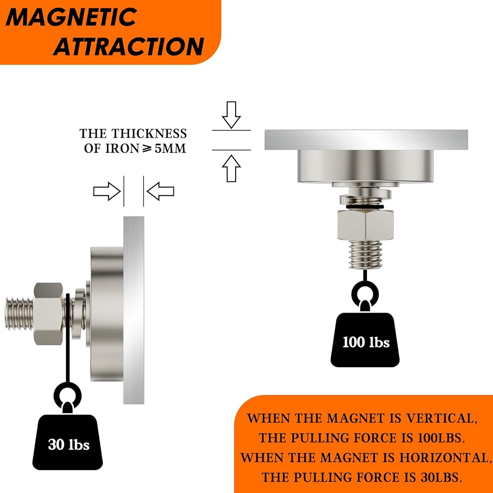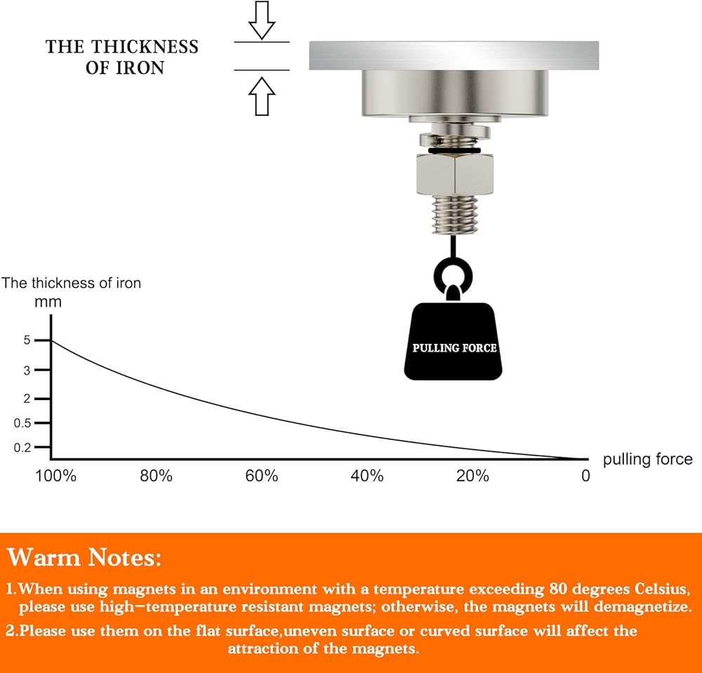 【مغناطيسات أرضية نادرة شديدة التحمل】: المغناطيس الملولب M6 هو مغناطيس النيوديميوم N42، والقاعدة المعدنية بسمك 0.28 بوصة/7 مم. قوة سحب مغناطيسية رأسية 90 رطل على قاعدة لوح فولاذي بسمك 0.33 بوصة (10 مم) بسبب مغناطيس النيوديميوم N42. قوي وعملي، المغناطيس الخاص بنا مغطى بالفولاذ الذي يمكنه تحمل القوة دون تشقق المغناطيس أو إتلافه.