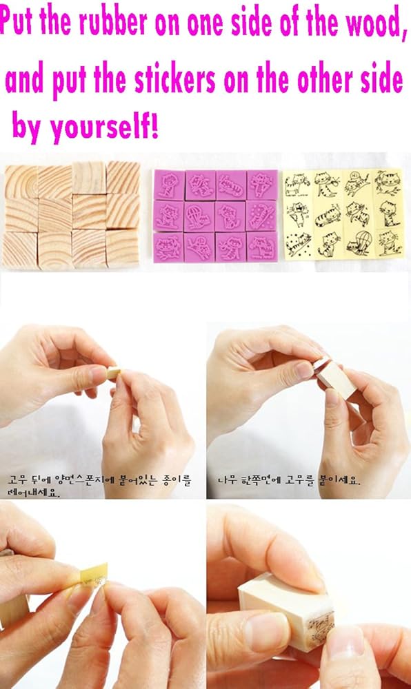 Put the rubber on one side of the wood, and put the stickers on the other side by yourself.