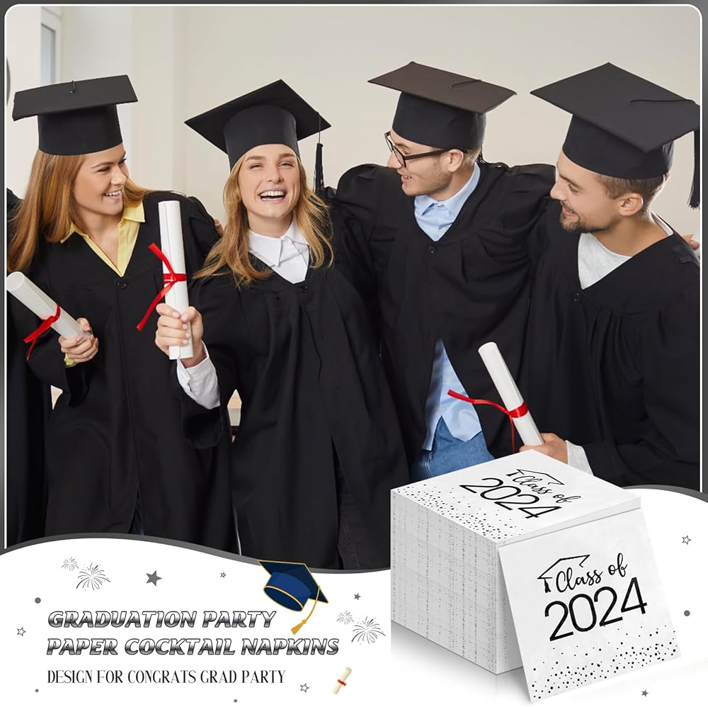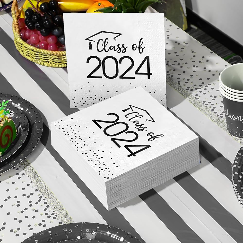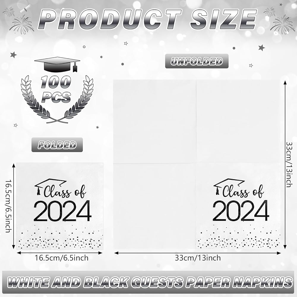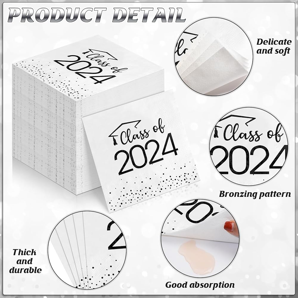Package Include: you will receive 100pcs class of 2024 graduation napkins,enough quantity for your usage and decoration needs. And these disposable paper napkins do not need to be cleaned that can reduce clean-up time, you can throw it directly after your party,your friends or teacher can spend more time in party.