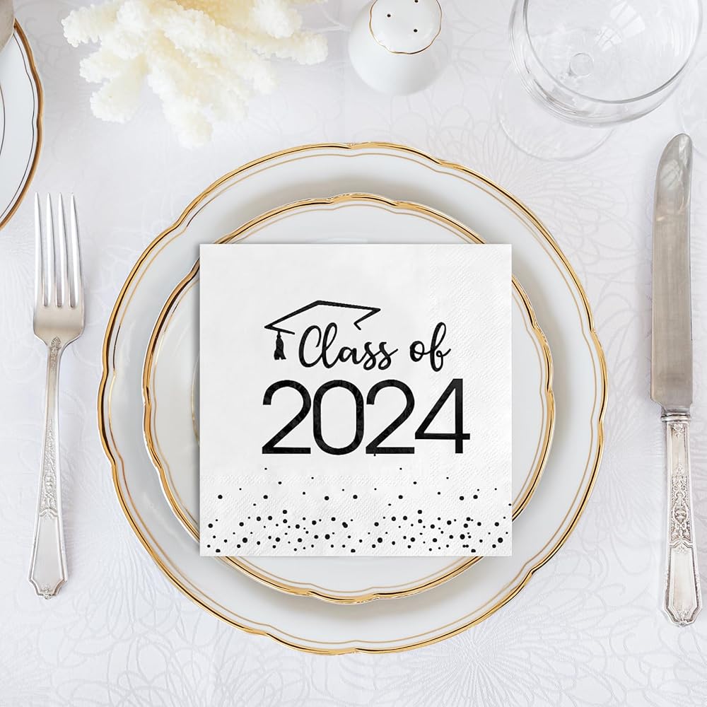 Classic Design: The pattern of this graduation grad napkins is simple and classic, with polka dots as the background, and the class of 2024 is printed with hot stamping,which make it look luxurious. And we provide a variety of color,you can choose the color you need according to your preference or the color of your bachelor's uniform. It will create a luxury party atmosphere by these disposable paper napkins.(US copyright protection)
