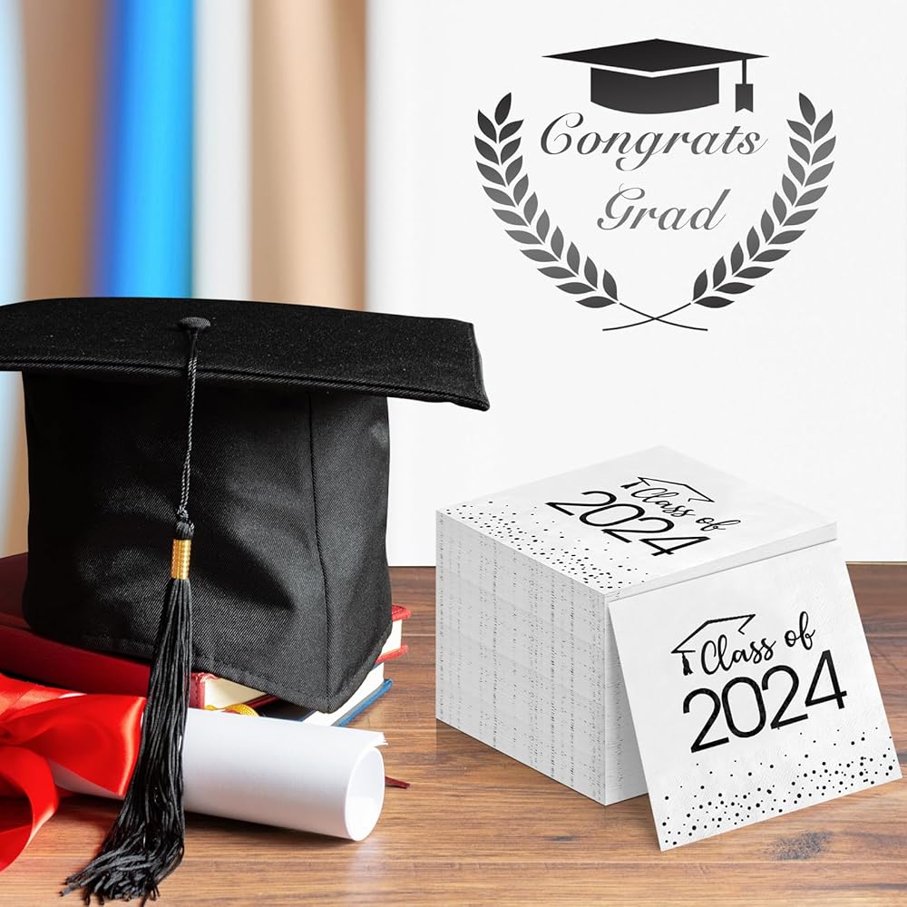 Easy to Use: these square 2024 graduation napkins measures 6.5 x 6.5 inches when folded and 13 x 13 inches when unfolded, fit beverage, appetizer, or dessert, you can use it in the guest bathroom as hand towels or as a large buffet napkin,great for table decorations.