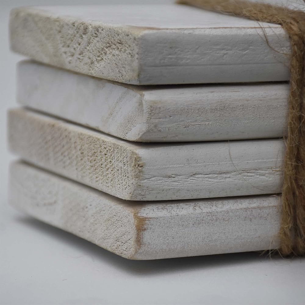 كتب خشبية مزخرفة - كتب مكدسة من الخشب المطلي باللون الأبيض مربوطة بخيوط وخضراء، ديكور مزرعة حديث للرف أو الرف، 5.9 بوصة عرض × 3.8 بوصة ارتفاع × 2.6 بوصة عمق