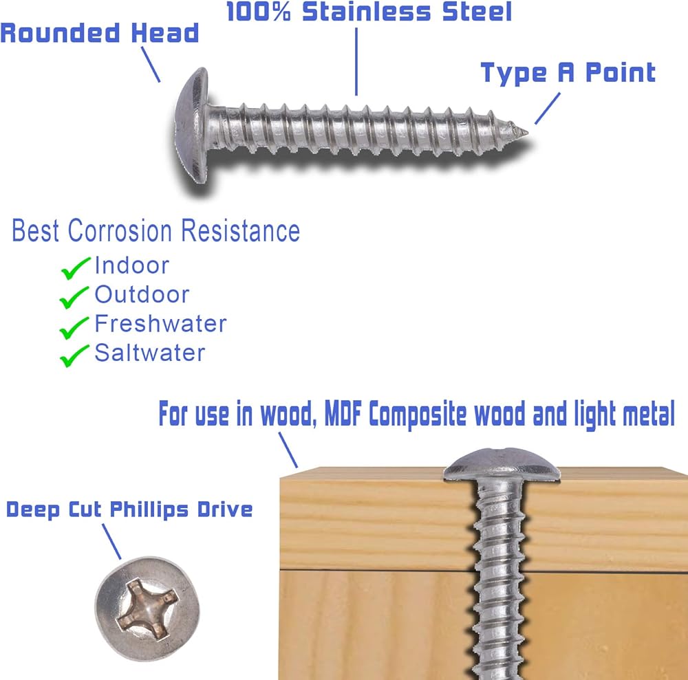 【البراغي التي يمكنك الاعتماد عليها】 إن البراغي الخشبية ذات رأس الجمالون الخاصة بنا قوية جدًا ورائعة للاستخدام الداخلي والخارجي. هذا الفولاذ المقاوم للصدأ متفوق على الفولاذ العادي ويوفر مقاومة ممتازة للصدأ.