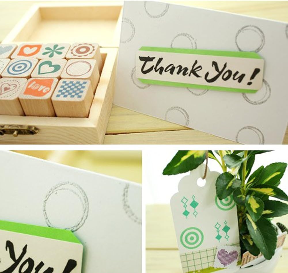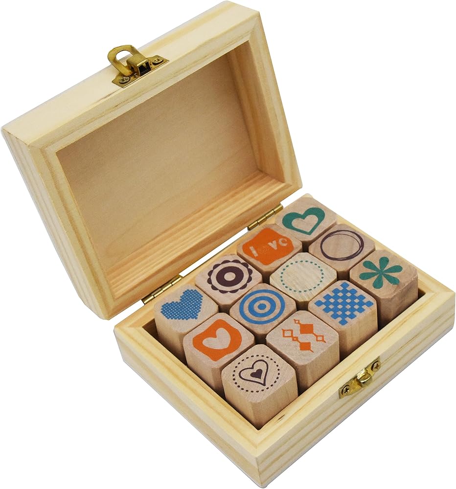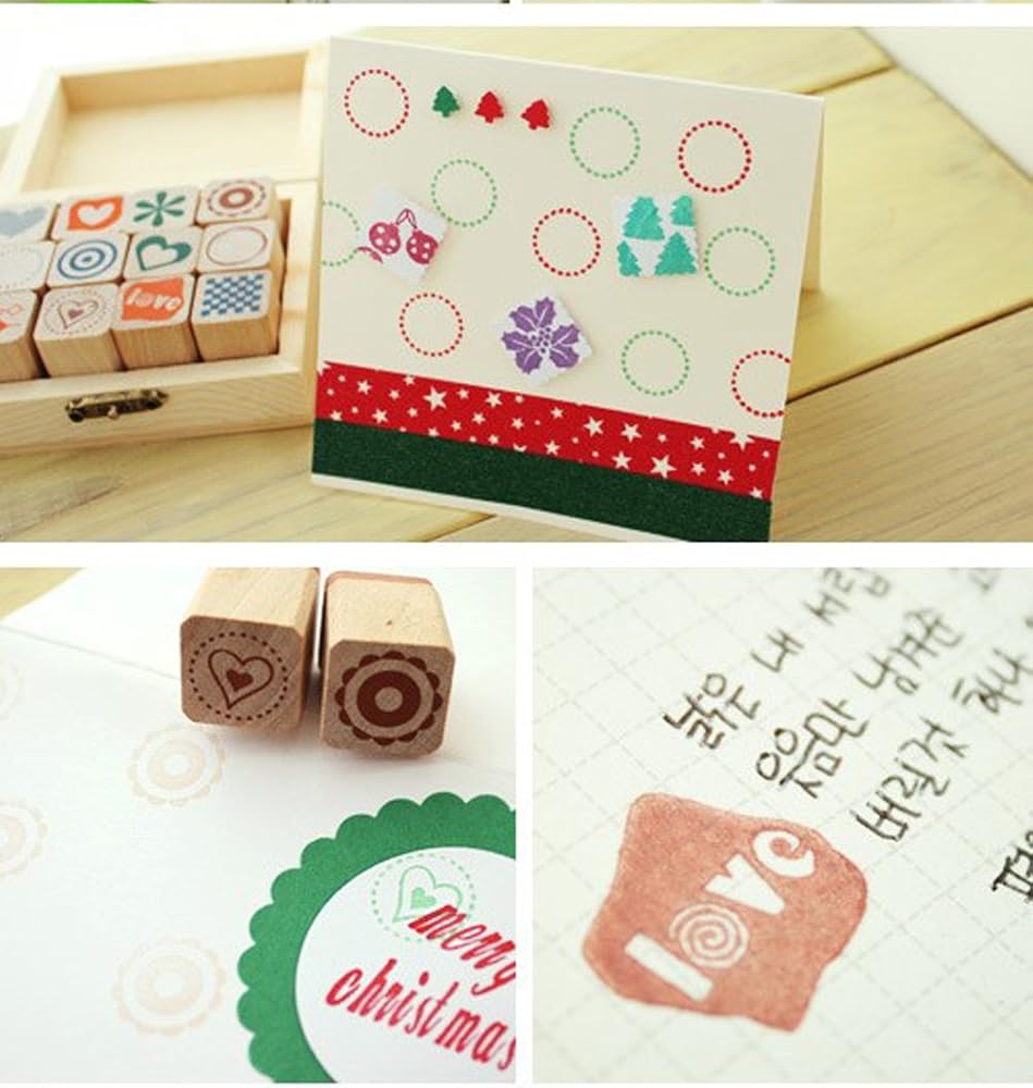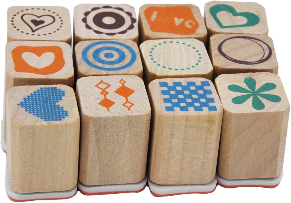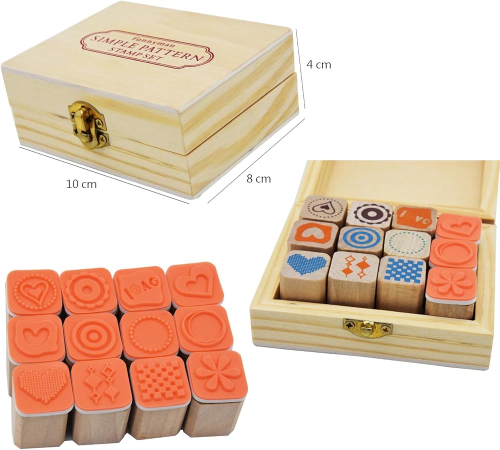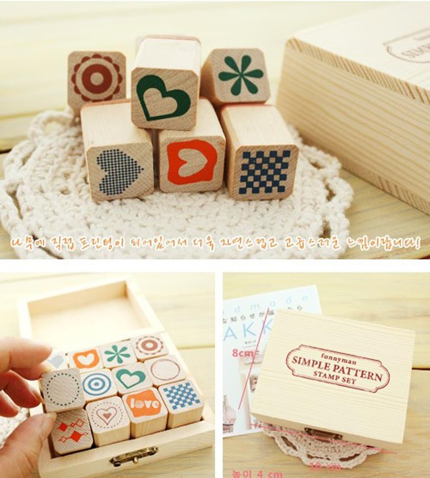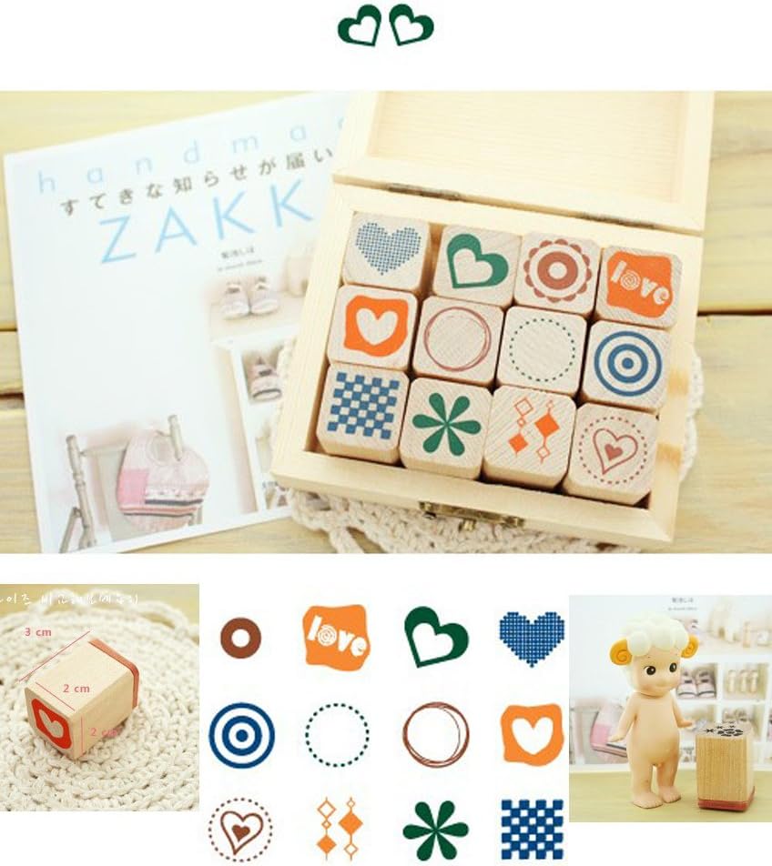 • High quality wood material lovely DIY stamp kit comes with 12 different designs.