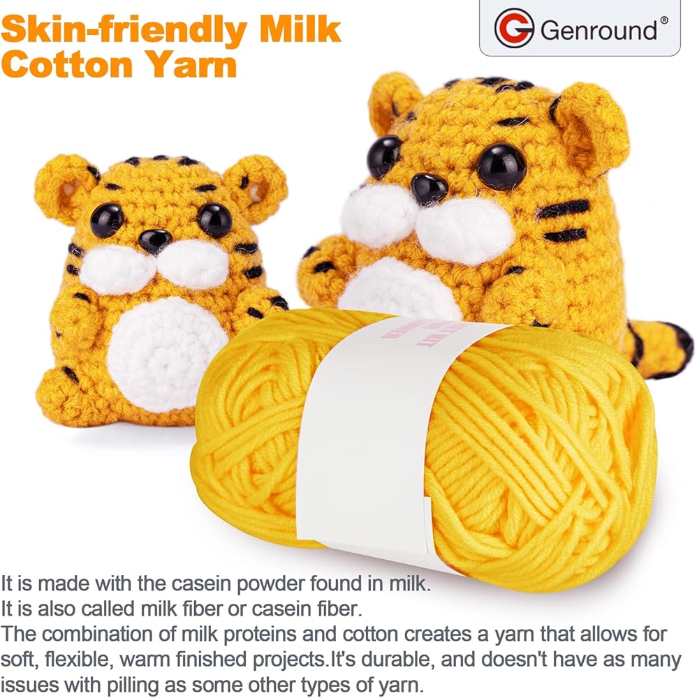 مجموعة أدوات الكروشيه للمبتدئين من Genround مع غزل سهل الحياكة لمجموعة أدوات الحياكة مع دروس فيديو خطوة بخطوة - مجموعة أدوات الكروشيه النمر هدية عيد الميلاد للبالغين والمراهقين