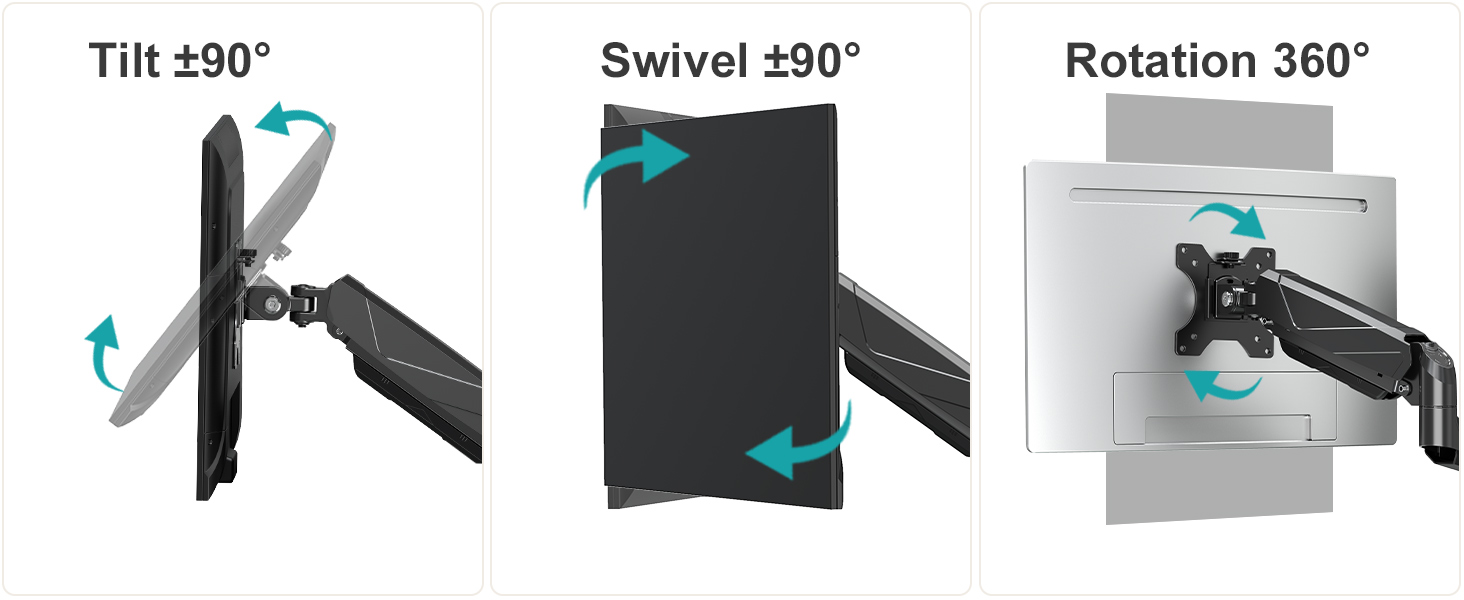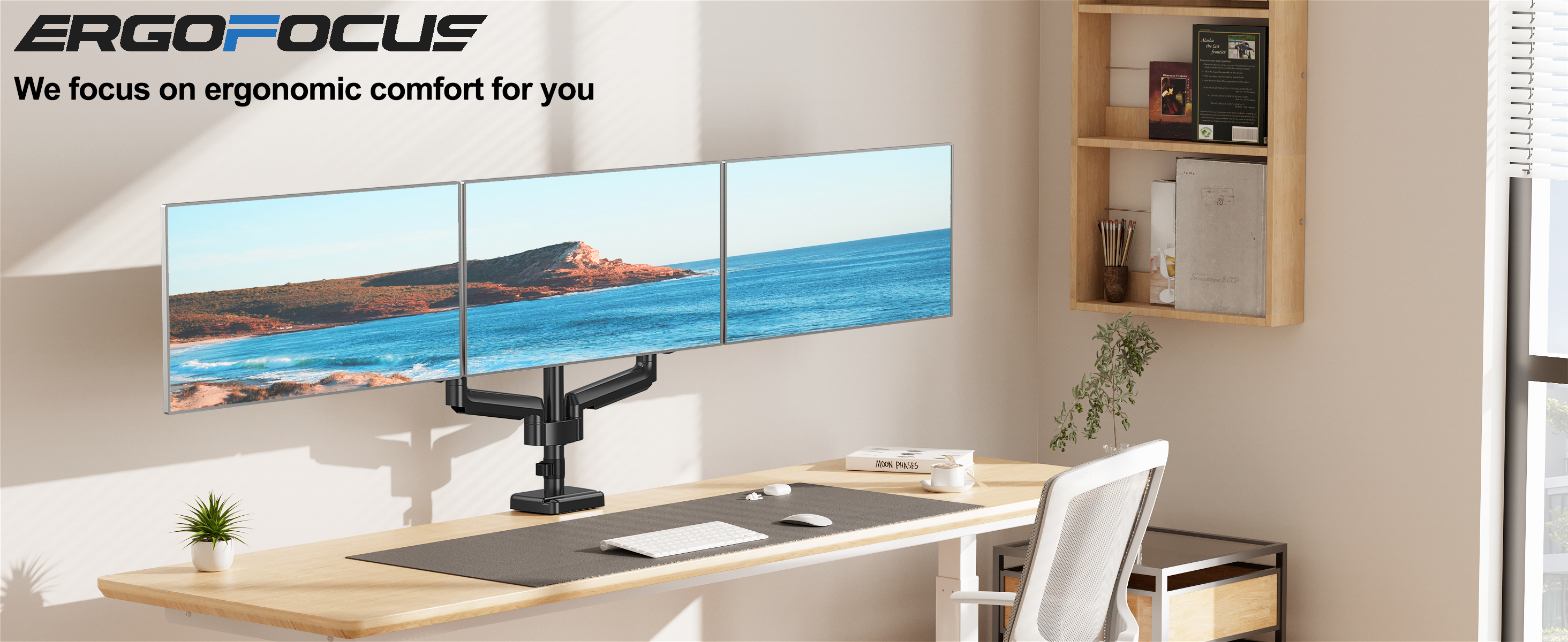قم بتحسين رؤيتك - يمكن لحامل شاشة ErgoFocus ثلاثي الحركة الكاملة إمالة ±90 درجة، والدوران ±90 درجة، ودعم الدوران 360 درجة. يمكن تعديل ارتفاع الشاشة المركزية ويقوم ذراعا زنبرك الغاز بالتمديد والسحب. بفضل مجموعات الشاشات المتعددة، يمكنك العثور بسهولة على زاوية العرض والموضع الأمثل للعمل المريح