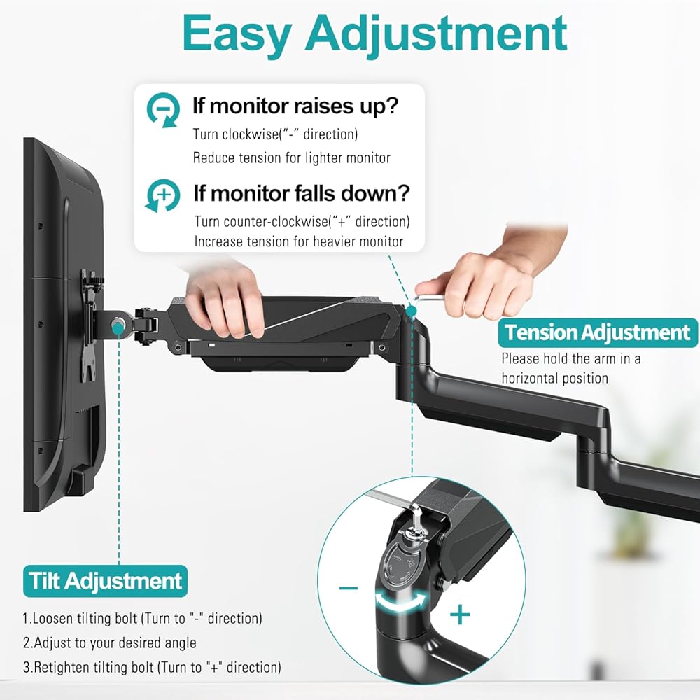 سهولة التجميع ودعم العملاء - يأتي مع تعليمات واضحة وأدوات تركيب، كما أن تركيب شاشة الكمبيوتر أكثر سهولة وأمانًا. يتم اختبار منتجات ErgoFocus من حيث المتانة قبل مغادرة المصنع. من فضلك لا تتردد في التواصل معنا لأية أسئلة