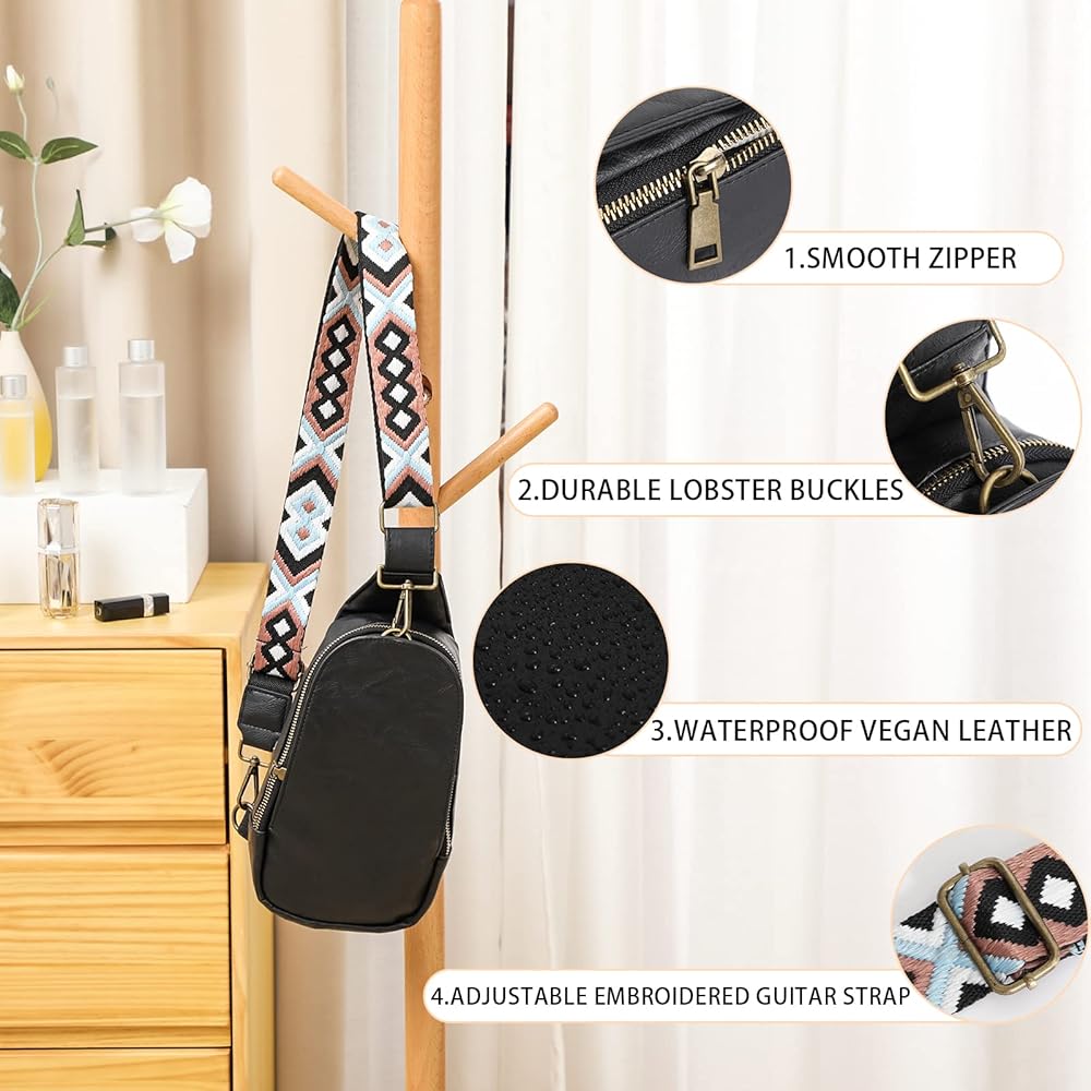 [حزام جيتار قابل للتعديل]: تأتي حقيبة كروس الجسم الخاصة بنا مع حزام جيتار عريض مطرز. هيكل متين وسميك بأطراف جلدية وخياطة دقيقة. حزام منسوج من القطن المطرز بتصميم أوسع وأكثر سمكًا، يوفر أقصى قدر من الراحة عند الاستخدام. أربعة أنماط يمكن استخدامها مع كل ملابسك.