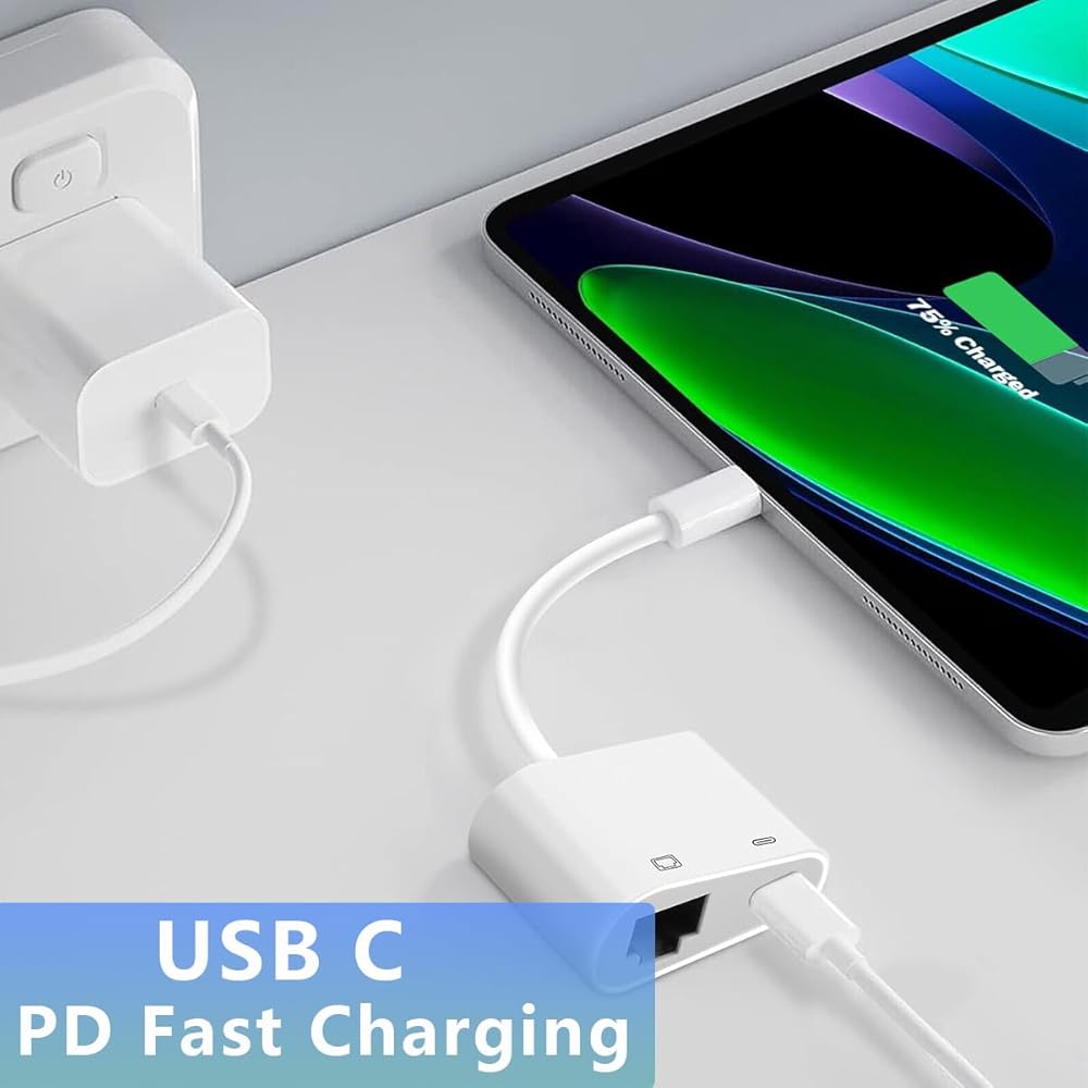 USB C to Ethernet Adapter with Charging, Type-C to RJ45 Ethernet Adapter, Portable USB-C Ethernet LAN Network Adapter Compatible for iPhone 15 Pro/Max/Plus MacBook Pro Air 2018, Samsung, iPad and More