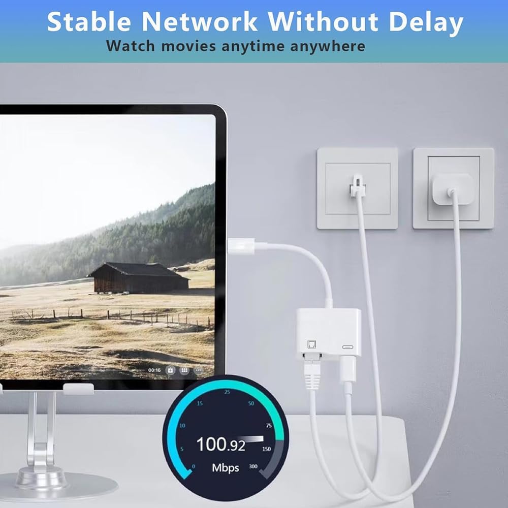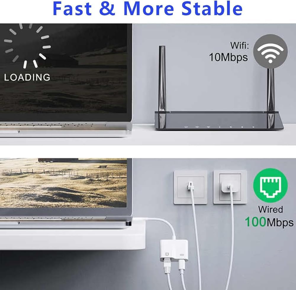 【2-in-1 USB C Ethernet Adapter】: Our usb c to RJ45 adapter with ethernet network port & Type-c 60W fast charging port. The usb c to ethernet adapter with 60w charging port makes network more stable, supporting ethernet Internet access and charging to work simultaneously, Solving the problem of unstable Wi-Fi, and allow you to watch videos and play games more smoothly.