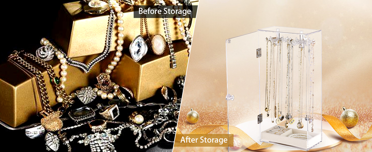 【خيارات هدايا عملية】منظم حامل القلادة ضروري لكل امرأة كحامل عرض مجوهرات عملي وأساسي. هدية جميلة للأم، والصديقة، والزوجة، والابنة، والأخت، والصديق الحميم، وزميل الصف، والزميل. لا توجد طريقة أفضل لتقديم منظم المجوهرات الشفاف هذا كهدية لأحبائك.