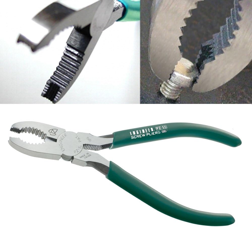 Screw saurus with a nose pliers that can be gripped and turned in narrow depths