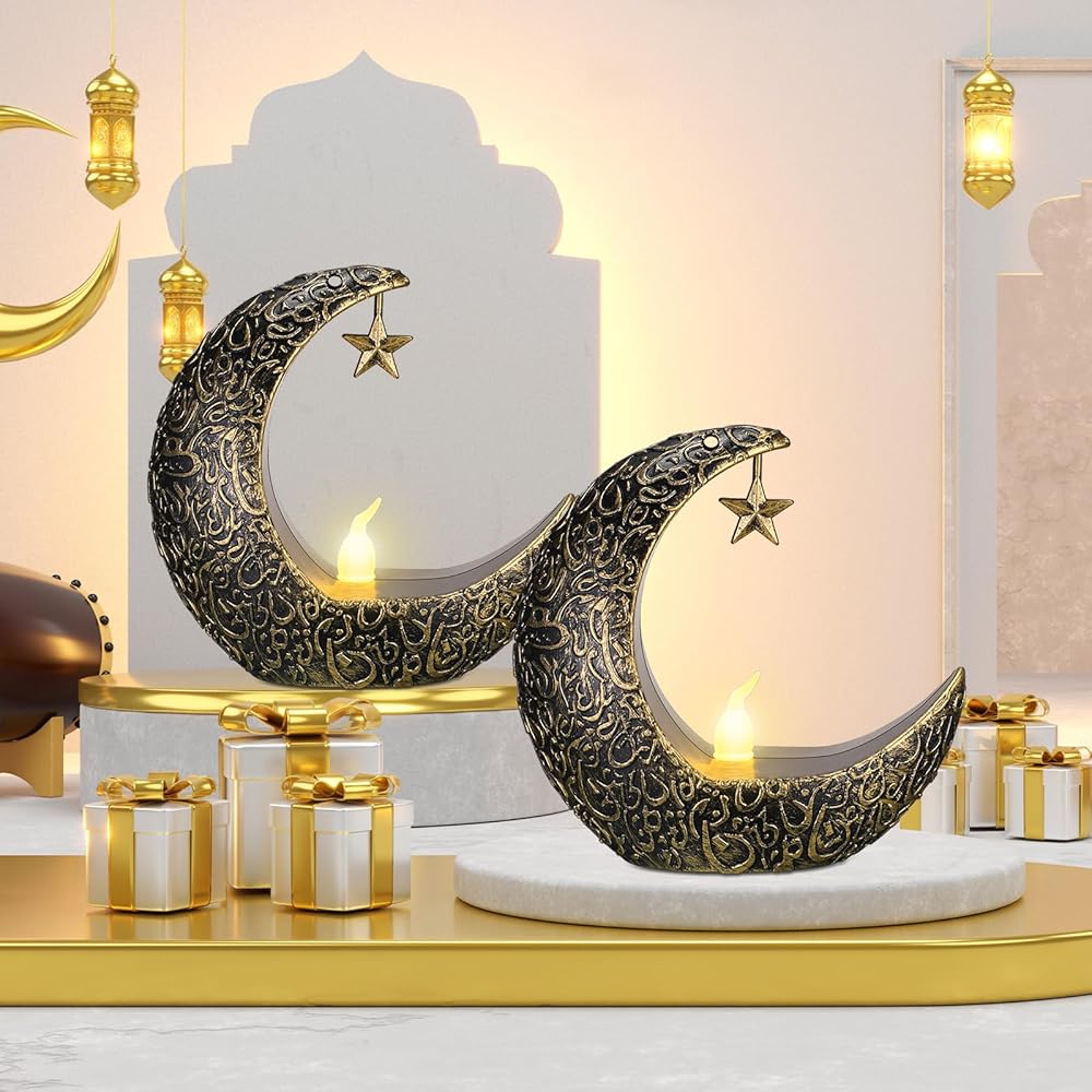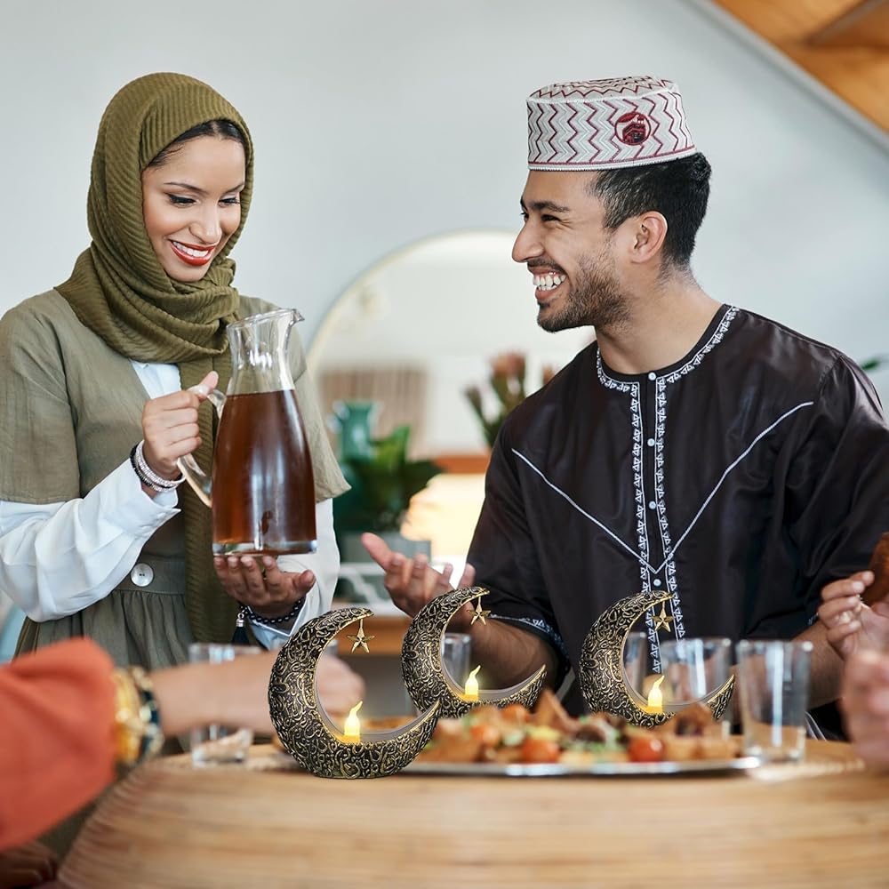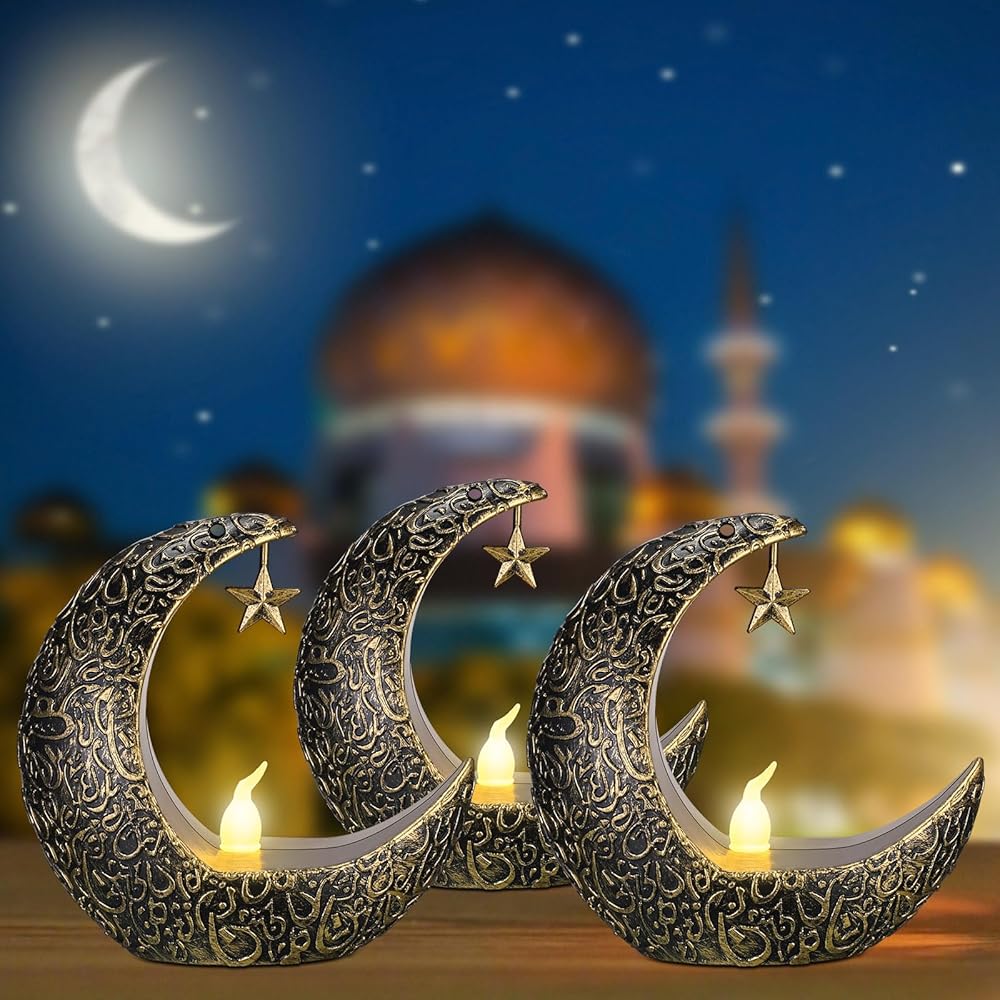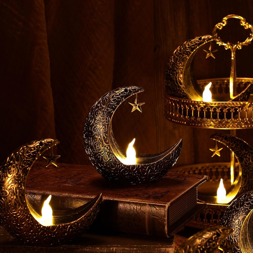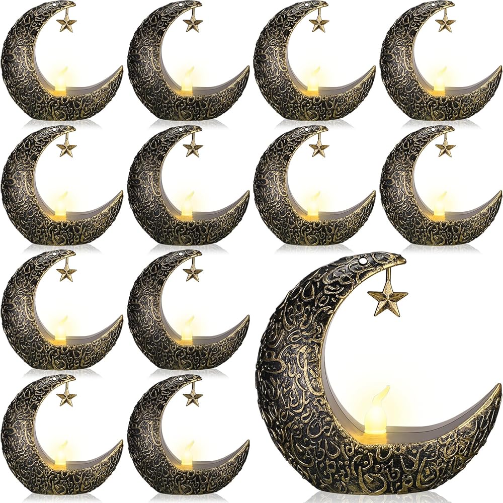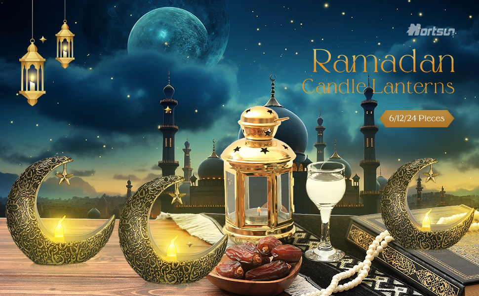 Hortsun 12 قطعة فوانيس شمعة عيد الأضحى LED عيد مبارك فانوس مبارك فوانيس مباركة ديكور نجمة القمر عيد الأضحى كريم أضواء LED خمر ديكور معلق فانوس للمنزل، الطاولة، الأطفال