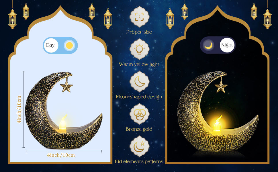 مواد عالية الجودة: فانوس رمضان الذهبي مصنوع بشكل جيد، مصنوع من مادة أكريلونتريل بوتادين ستايرين، قوي ومقاوم للخدش؛ تضفي الألوان البرونزية والذهبية الجذابة للفانوس طابعًا مغربيًا عتيقًا مستوحى من ديكور مساحتك ويكمله