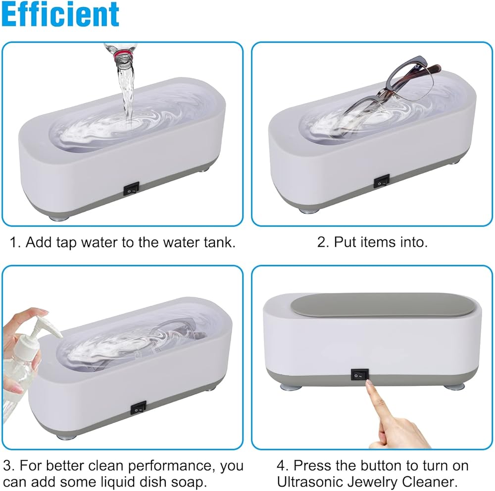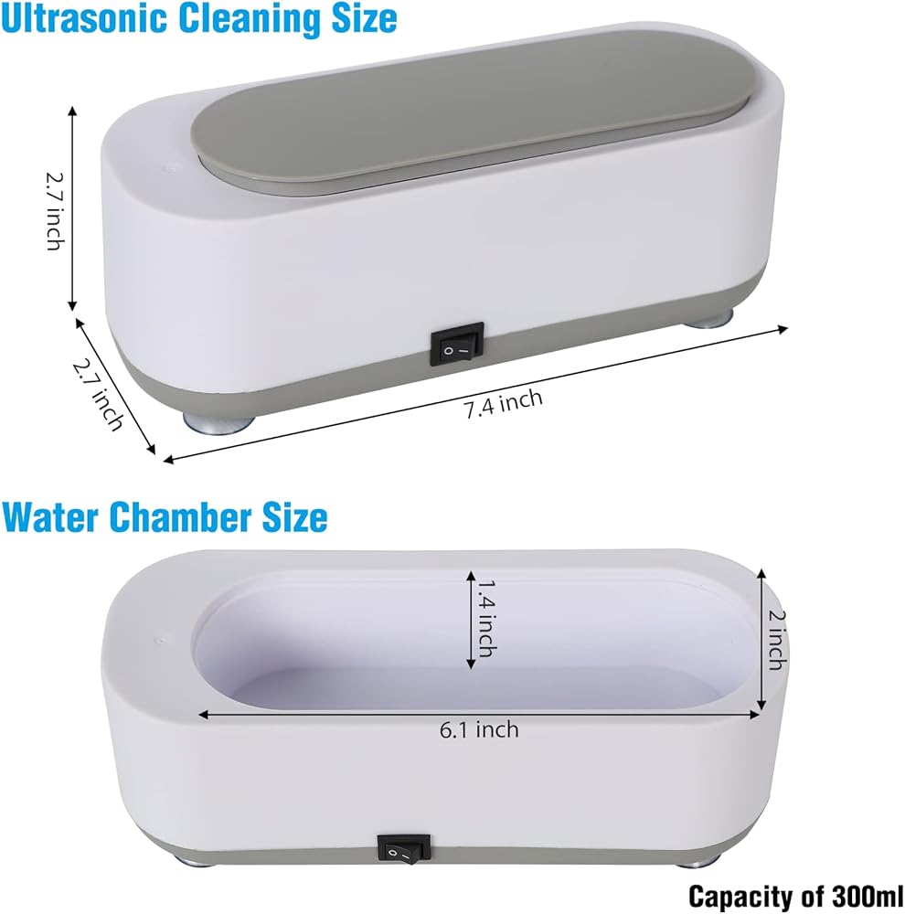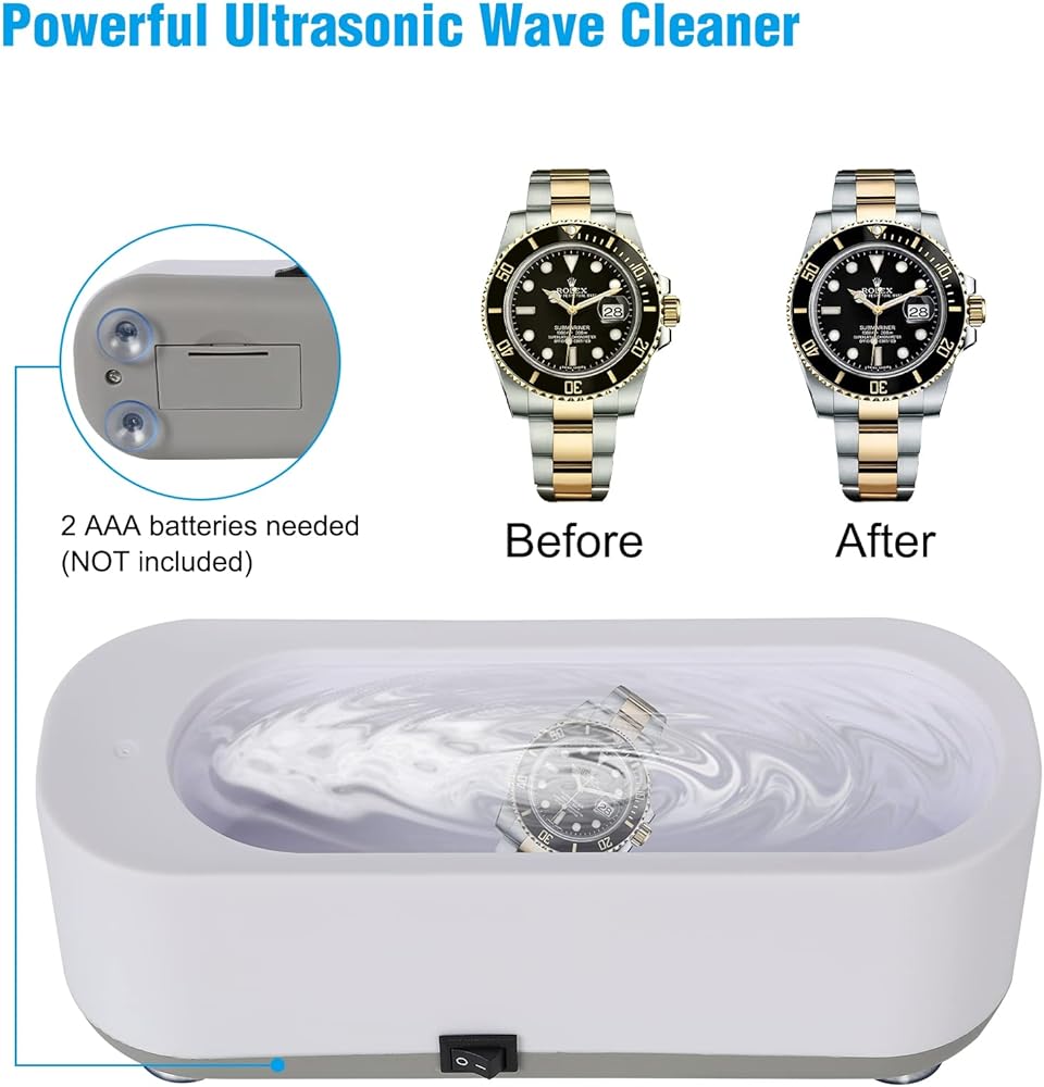 منظف المجوهرات بالموجات فوق الصوتية من مورتايم، 300 مل ببطاريتين AAA تعمل بجهاز التنظيف المنزلي بالموجات فوق الصوتية للنظارات والمجوهرات والساعات والقلائد والخواتم