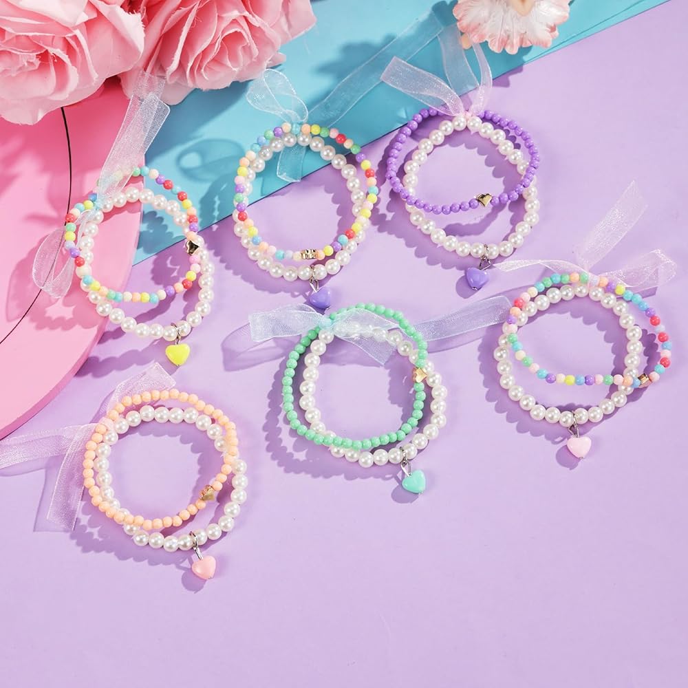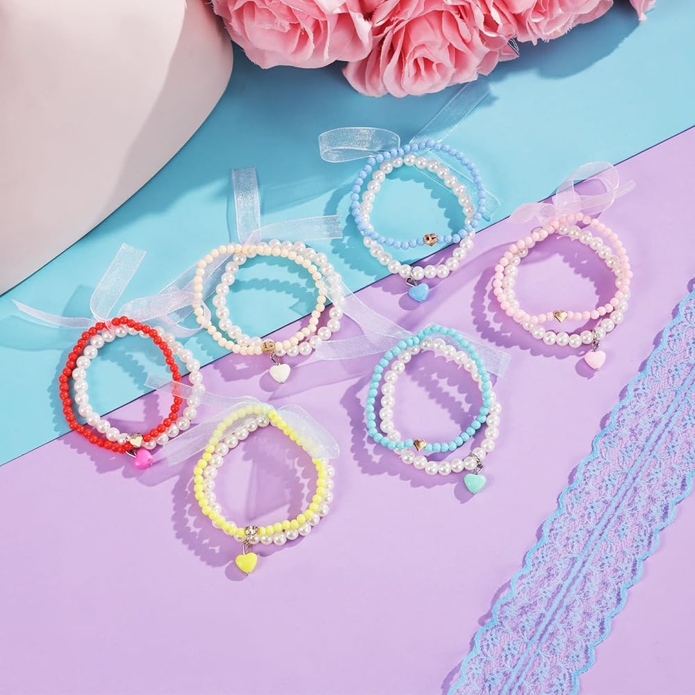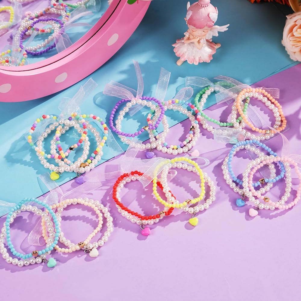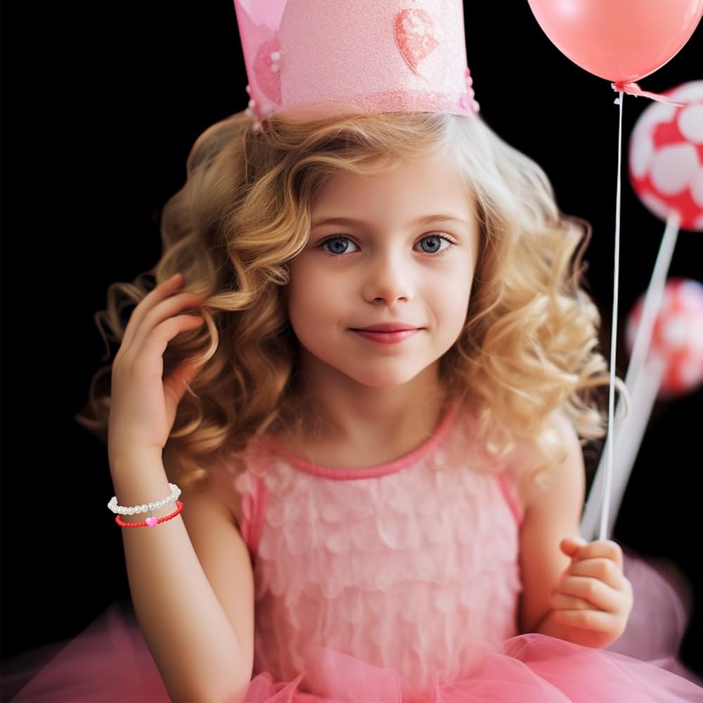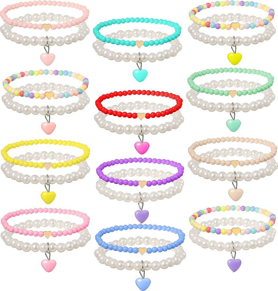 أساور هدية عيد الحب من PinkSheep للفتيات، 24 قطعة من سوار الصداقة الملون باللؤلؤ على شكل قلب للفتيات المراهقات، مجموعة أساور ساحرة مطرزة بالخرز، أشياء لطيفة لعيد الحب للفتيات