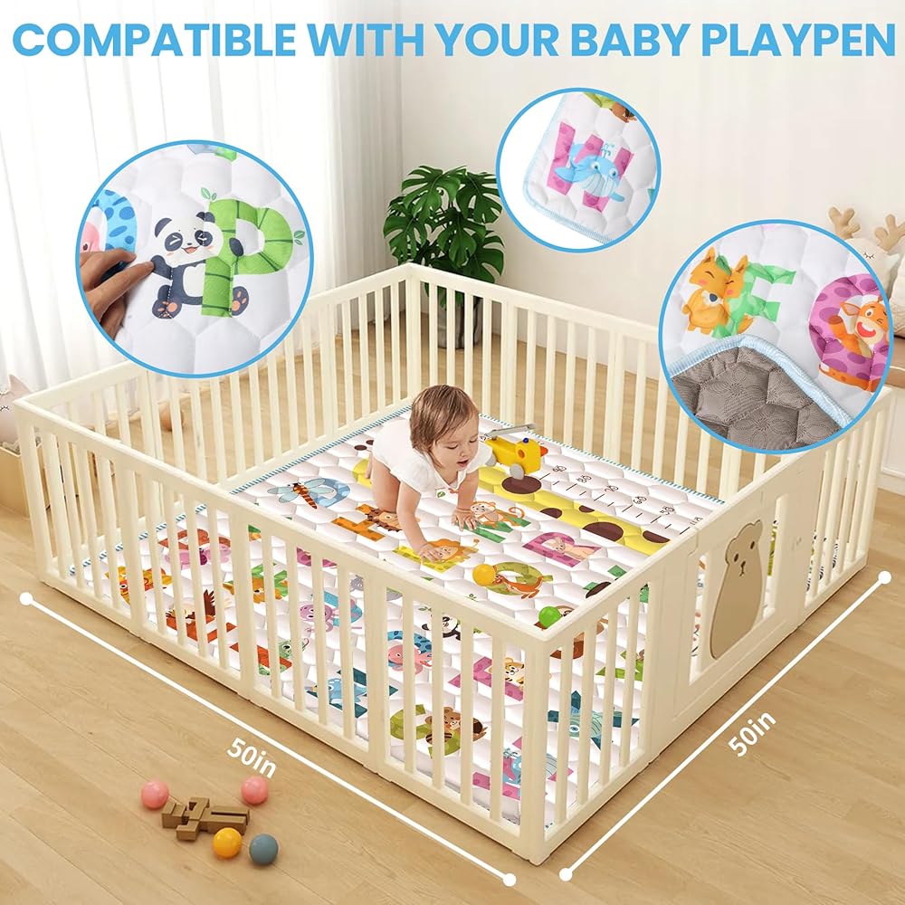 🐬【متوفرة لركن لعب الأطفال في الأماكن المغلقة وفي الهواء الطلق】سجادة اللعب مقاس 50 × 50 بوصة للأطفال من عمر 6 إلى 12 شهرًا متوافقة تمامًا مع سياج الأطفال من نفس الحجم، مما يجعلها مناسبة للاستخدام في غرف الأطفال وغرف المعيشة وغرف النوم. كما يسمح التصميم القابل للطي لمفرش اللعب بسهولة النقل في النزهات والرحلات، مما يوفر الراحة للآباء الجدد.