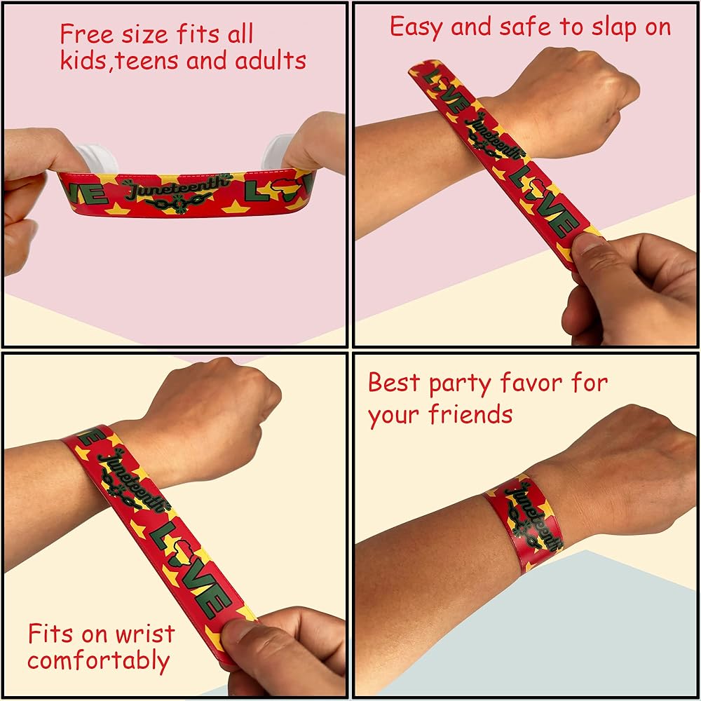 Wide Usages - these Juneteenth slap wristband is ideal goodie bag stuff fillers for Freedom Day Party, school Juneteenth party, community African-American parties and other Juneteenth activities. PS: these slap bracelets suitable for kids over 12 years old.
