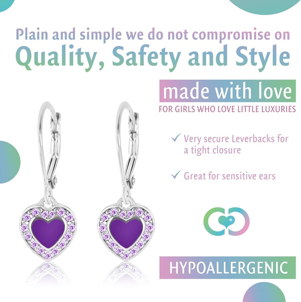 • UNIQUE HEART DESIGN WITH SWAROVSKI ELEMENTS – These charming hearts look like they just escaped from a fairy-tale, with their sparkling, violet Swarovski crystal elements – a piece of jewelry suitable for little princesses. Made of premium 925 Sterling silver, they will last you for a long, long time.