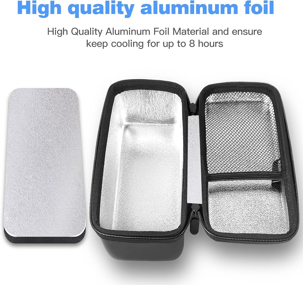 Ice bricks and translucent mesh storage bags in the case can ensure the stability of diabetic case to carry supplies, against crushing, and needles are very easy to change, hygiene.