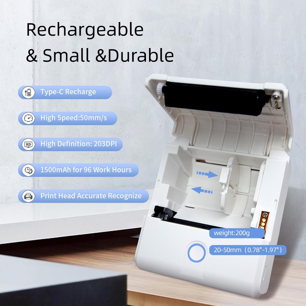 Lightweight, Compact to Follow You-this portable label printer is made for your convenience! Take it with you on your business trip and enjoy smart label printing! Use it as your home label wireless printer or your office label maker for long years!