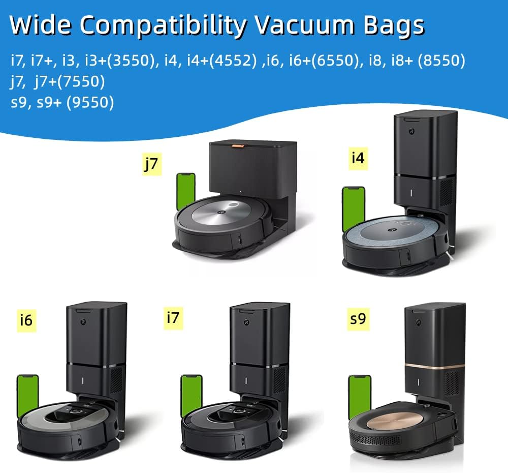【نماذج متوافقة】مجموعة أكياس المكنسة الكهربائية هذه متوافقة مع سلسلة iRobot Roomba i & j & s. أكياس الغبار البديلة تناسب موديلات iRobot Roomba بما في ذلك: i7 i7+ j7 j7+(7550) i3 i3+(3550) i4 i4+(4552) i6 i6+(6550) i8 i8+ (8550) s9 s9+ (9550) المكانس الكهربائية الروبوتية. يمكن أن يناسب جميع نماذج التخلص التلقائي من الأوساخ من iRobot Clean Base. يرجى التحقق من طراز المكنسة الكهربائية الخاص بك قبل الشراء!