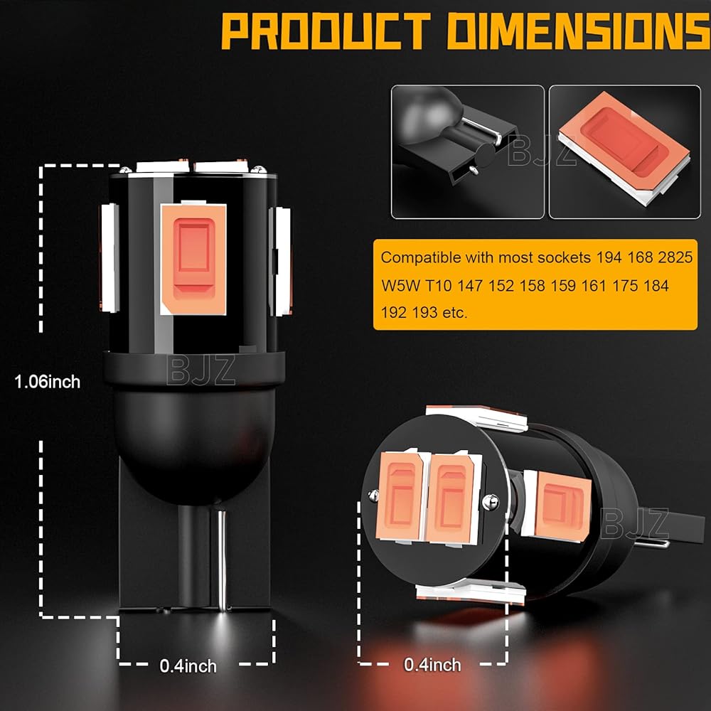 ✔🚘(مناسب بشكل عام لـ T10، 147، 152، 158، 159، 161، 168، 175، 184، 192، 1). 93، 194، 2825، مقاس W5W. (يرجى التحقق من دليل مالكي القوارب أو المركبات أو تأكيد حجم المصباح الأصلي قبل الطلب، أو الاتصال بنا للتأكد من حجم المصباح.) لون الضوء: كهرماني؛ الجهد: 12 فولت تيار مستمر. التدفق الضوئي: 300LM؛ الطاقة: 1.2 واط؛ الحالي: 0.1A؛ درجة حرارة اللون: 2500 ك؛ حجم المصباح: 1.06 بوصة × 0.4 بوصة.