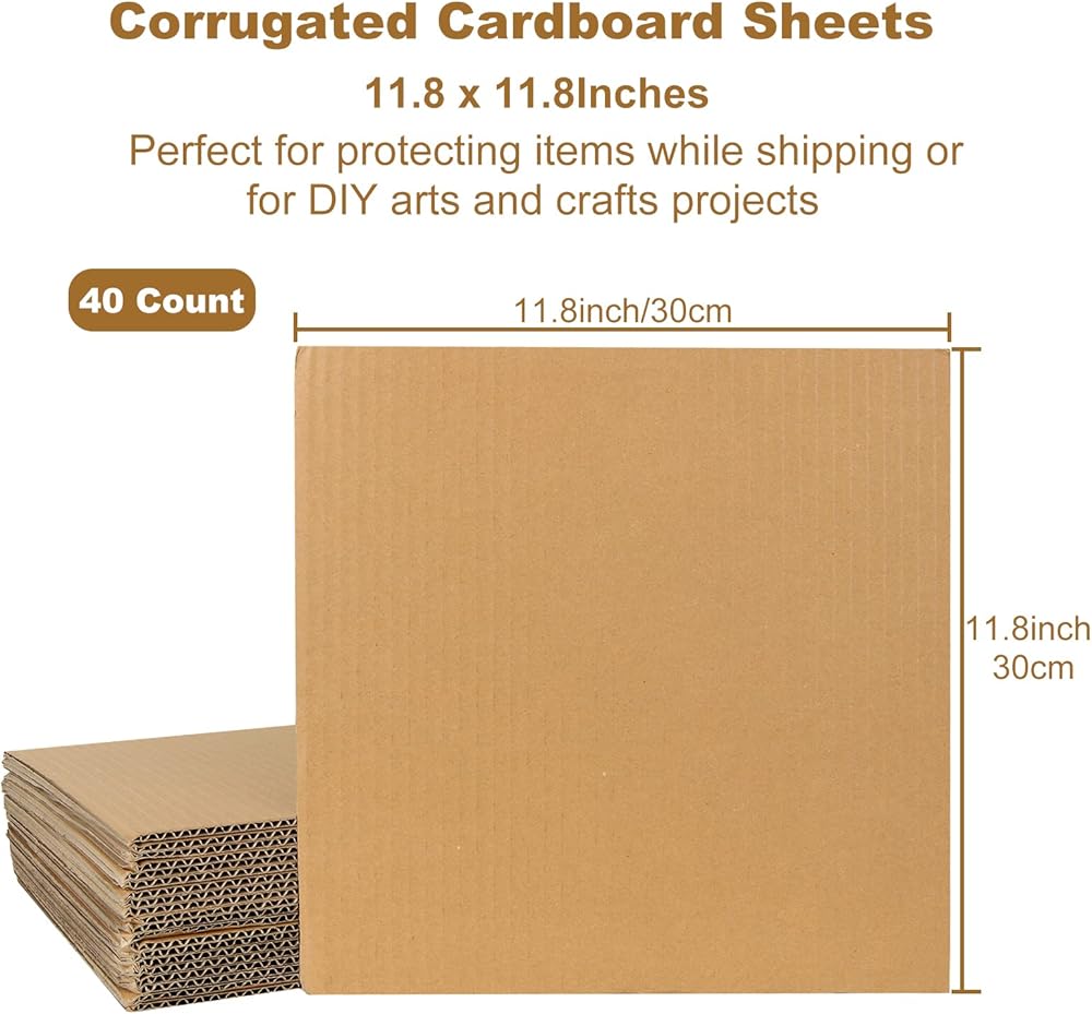 ما تحصل عليه: سوف تحصل على 40 قطعة من الورق المقوى المموج باللون البني مقاس 30.48 × 30.48 سم، بحيث لا تتردد في القيام بمشروعات DIY؛ يمكن استخدام الورق المقوى بسمك 1/6 بوصة كعامل توسيد أو كورقة فاصلة