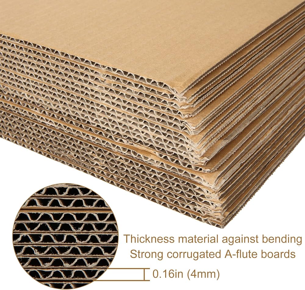 ورقة من الورق المقوى: صفائح الورق المقوى المربعة مصنوعة من ورق مقوى مموج قوي بسمك 0.16 بوصة (4 مم) ضد الانحناء؛ هذا الورق المقوى مثالي لإضافة حماية إضافية عند الشحن