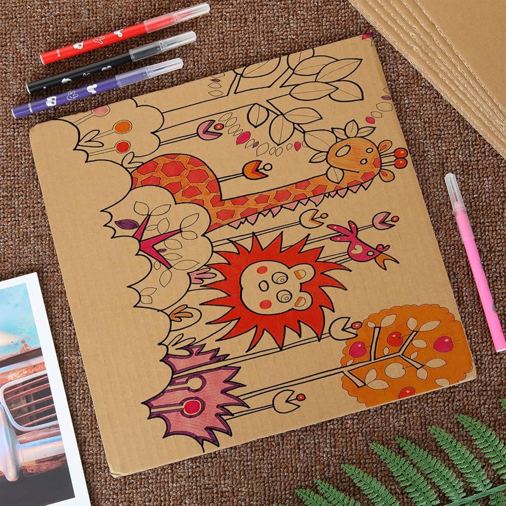 الأبعاد: يبلغ مقاس كل ورقة من الورق المقوى المسطح تقريبًا. 11.8 بوصة × 11.8 بوصة (30 × 30 سم) وسمك 1/6 بوصة (4 مم)، فلوت على شكل حرف A، كرتون مربع؛ يمكن قصها حسب الحجم والشكل المرغوب فيه