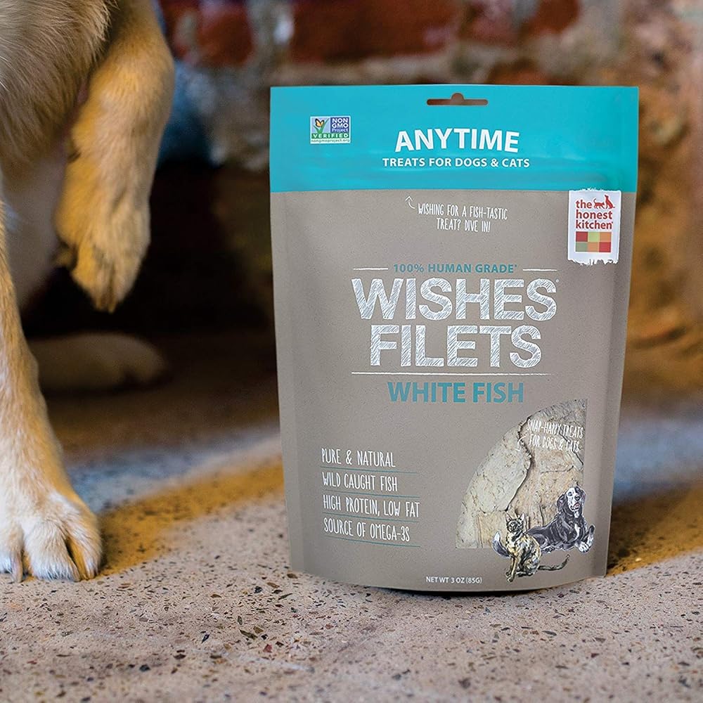Wishes filets are light, crispy and perfectly snapable so you can use tiny morsels for smaller mouths. Dogs and cats love the taste, and you'll love that they're made with wild caught fish loaded with protein and Omega-3s. A treat both dogs and cats agree on—wishes do come true!.