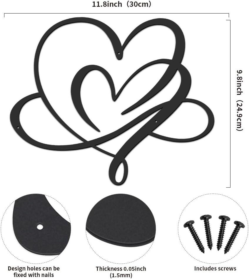 فن جدار معدني على شكل قلب، ديكور جدار الحب الأبدي لغرفة النوم، ديكور جدار الحب 11.8 بوصة، ديكور جدار غرفة النوم فوق السرير، ديكور جدار فوق السرير، ديكور جدار المنزل، هدية لها، هدايا عيد الميلاد، ديكور جدار عيد الميلاد