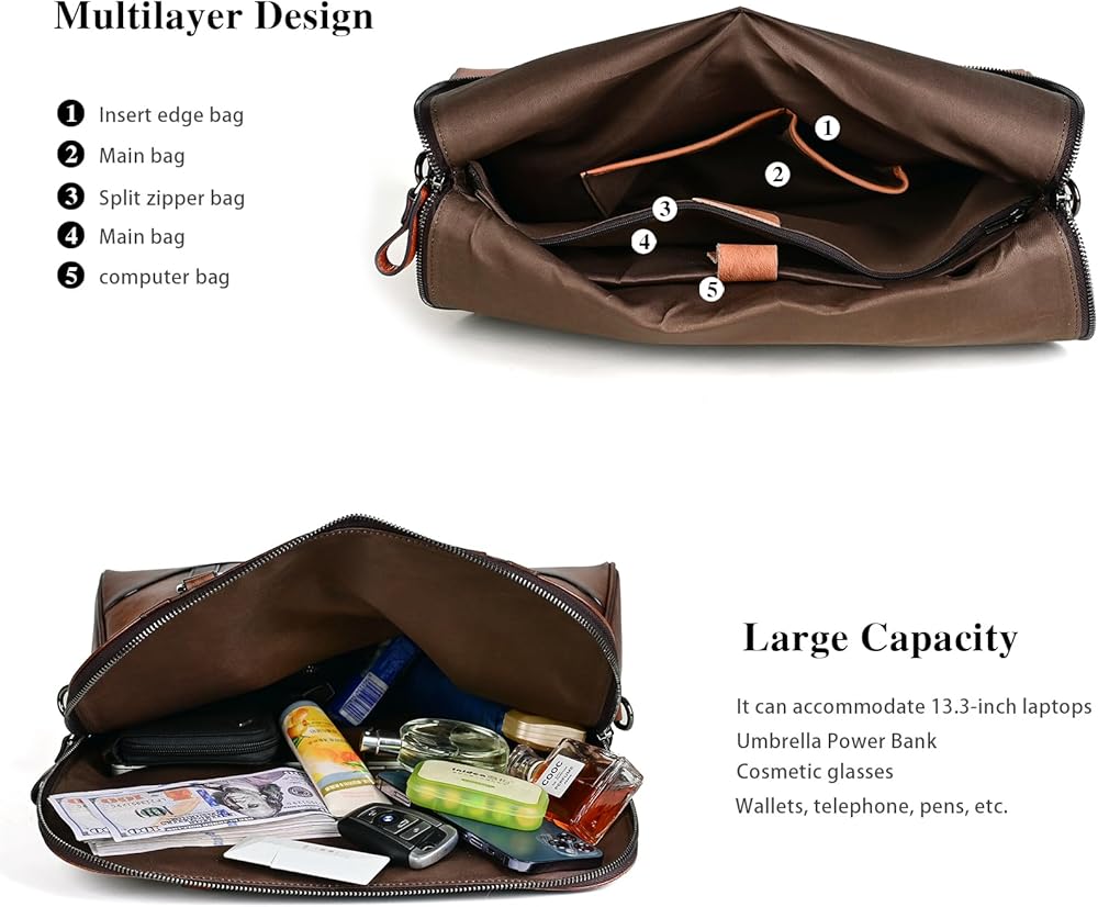 This women's crossbody bag is made of high quality leather and features a top zipper closure, a front pocket with magnetic closure, a back zipper pocket, and two open pockets in the main compartment. The adjustable, removable shoulder strap allows you to carry different styles of bags, and the interior is lined with soft polyester fabric, providing plenty of room for your cell phone, wallet, keys and other small items on your laptop. This bag is perfect for daily use, shopping and traveling, and a perfect gift for a lady.