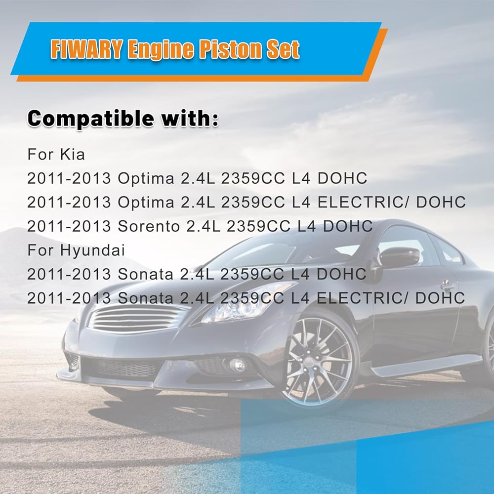 FIWARY Engine Piston Set Compatible with for 2011-2013 Hyundai Sonata Kia Sorento Optima 2.4L Aftermarket Parts OE 23040-2G500 23410-2G500