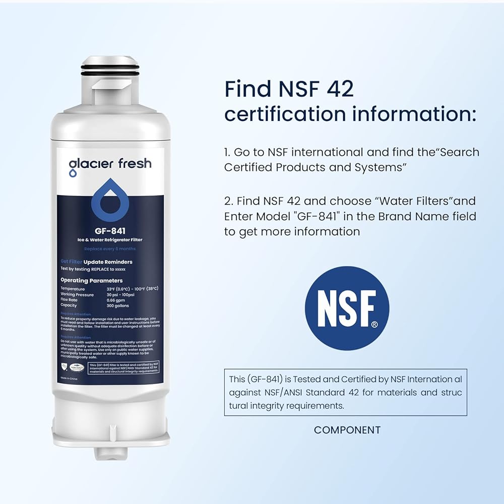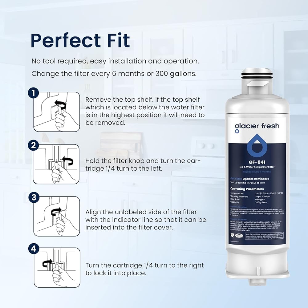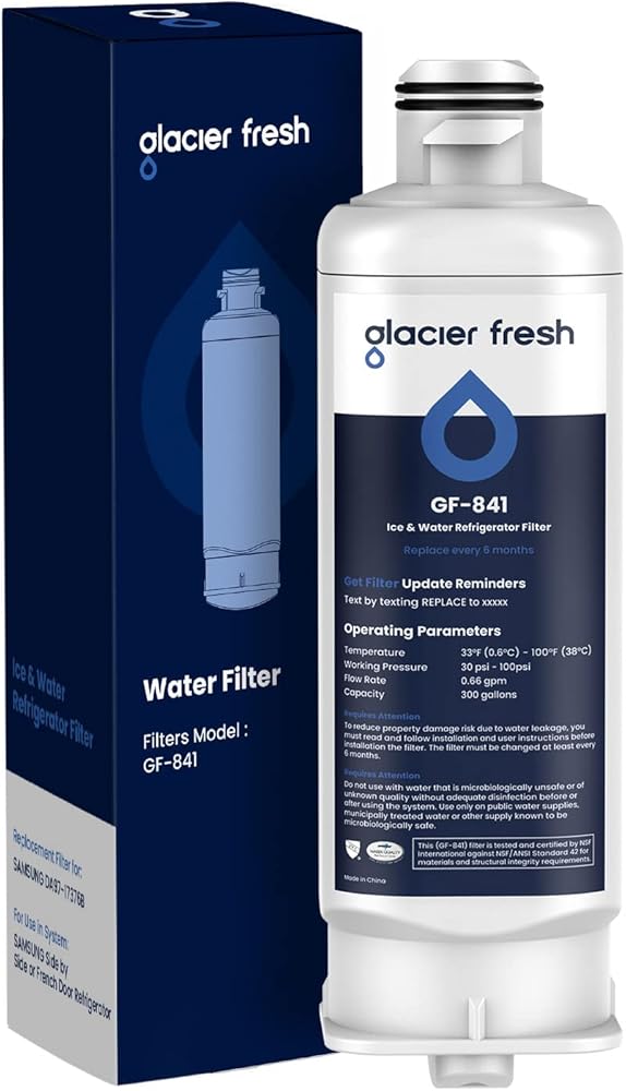 • عمر الفلتر 6 أشهر: للحصول على أفضل نتائج فلتر، يجب استبدال فلتر مياه سامسونج هاف-كين/اكسب كل ستة أشهر أو 300 جالون. شرب أكثر أمانًا، جلاسير فريش التي تحمي جميع أفراد الأسرة.