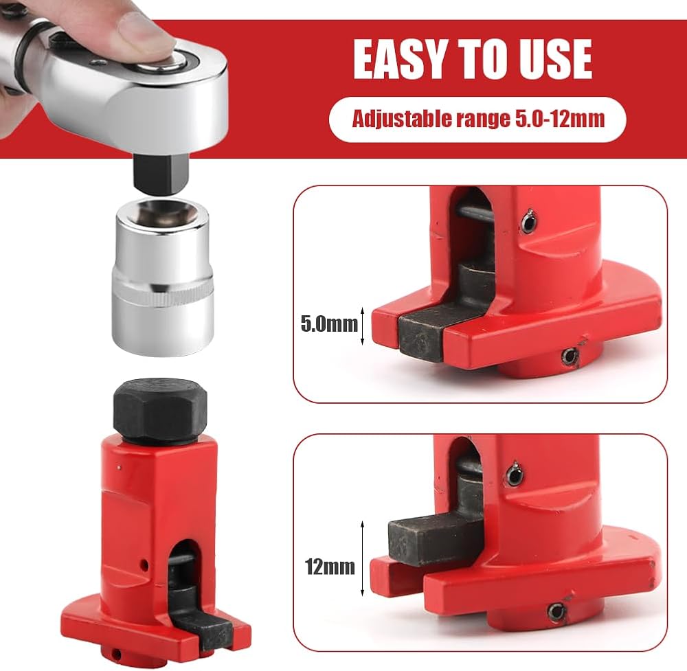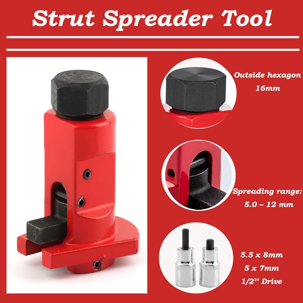 【مناسبة لـ: تعمل أداة توزيع الدعامات على معظم السيارات المجهزة بمحور على شكل مسمار قرصي، نطاق آذان المشبك القابل للتعديل هو 5.0-12 مم. يصعب استخدام معظم أدوات المقبس الدعامة بسبب طولها. تم تصميم أداة توزيع الدعامات لتكون منخفضة قدر الإمكان، مما يسمح لها بالملاءمة في المساحات الضيقة، مما يجعل عملك أسهل بكثير.