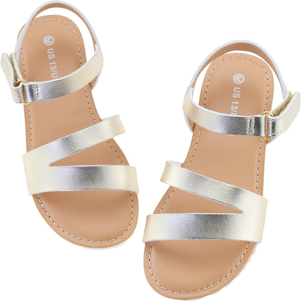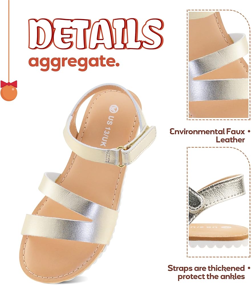 COMFORTABLE SUMMER SANDALS FOR GIRLS: Open toe sandals for girls with soft faux leather upper and skin-friendly lining provide your little kids with all-day comfort.